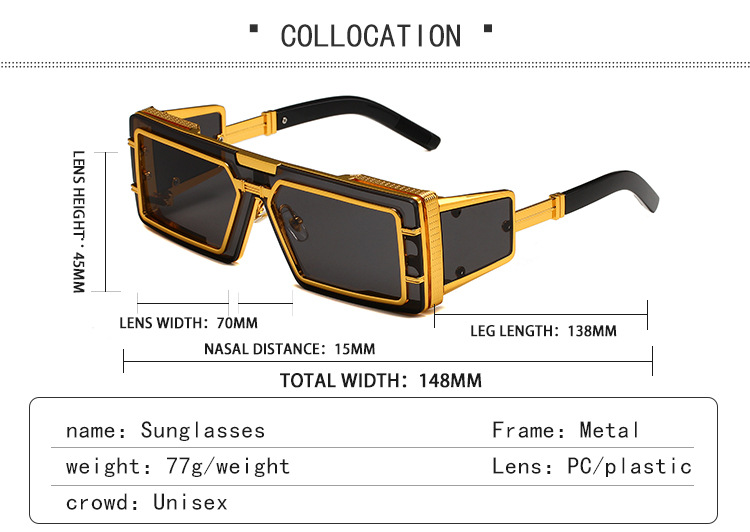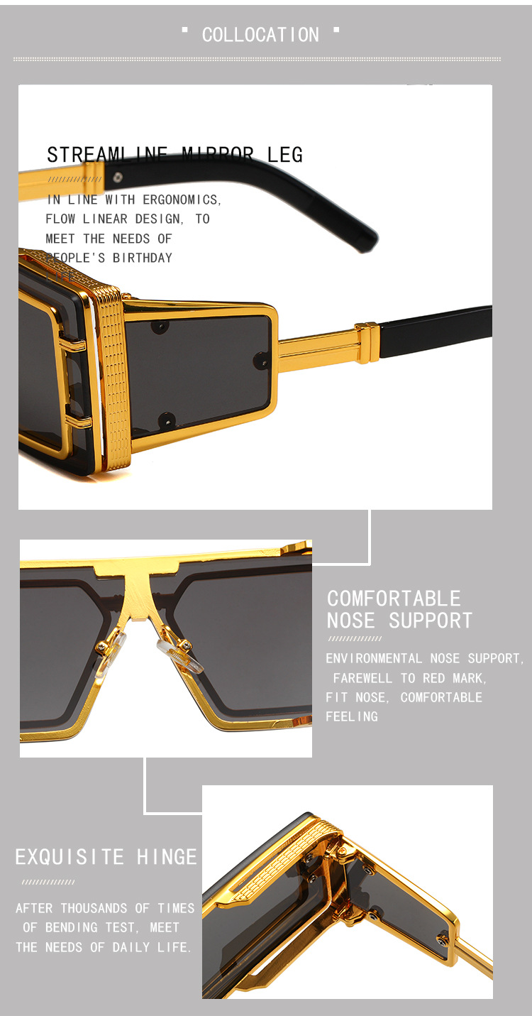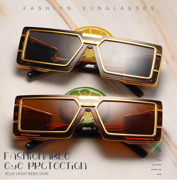 유럽과 미국의 스팀펑크 스타일 선글라스, 여성용 고급 대형 프레임 선글라스, 남성용 트렌디한 풀프레임 일체형 선글라스
