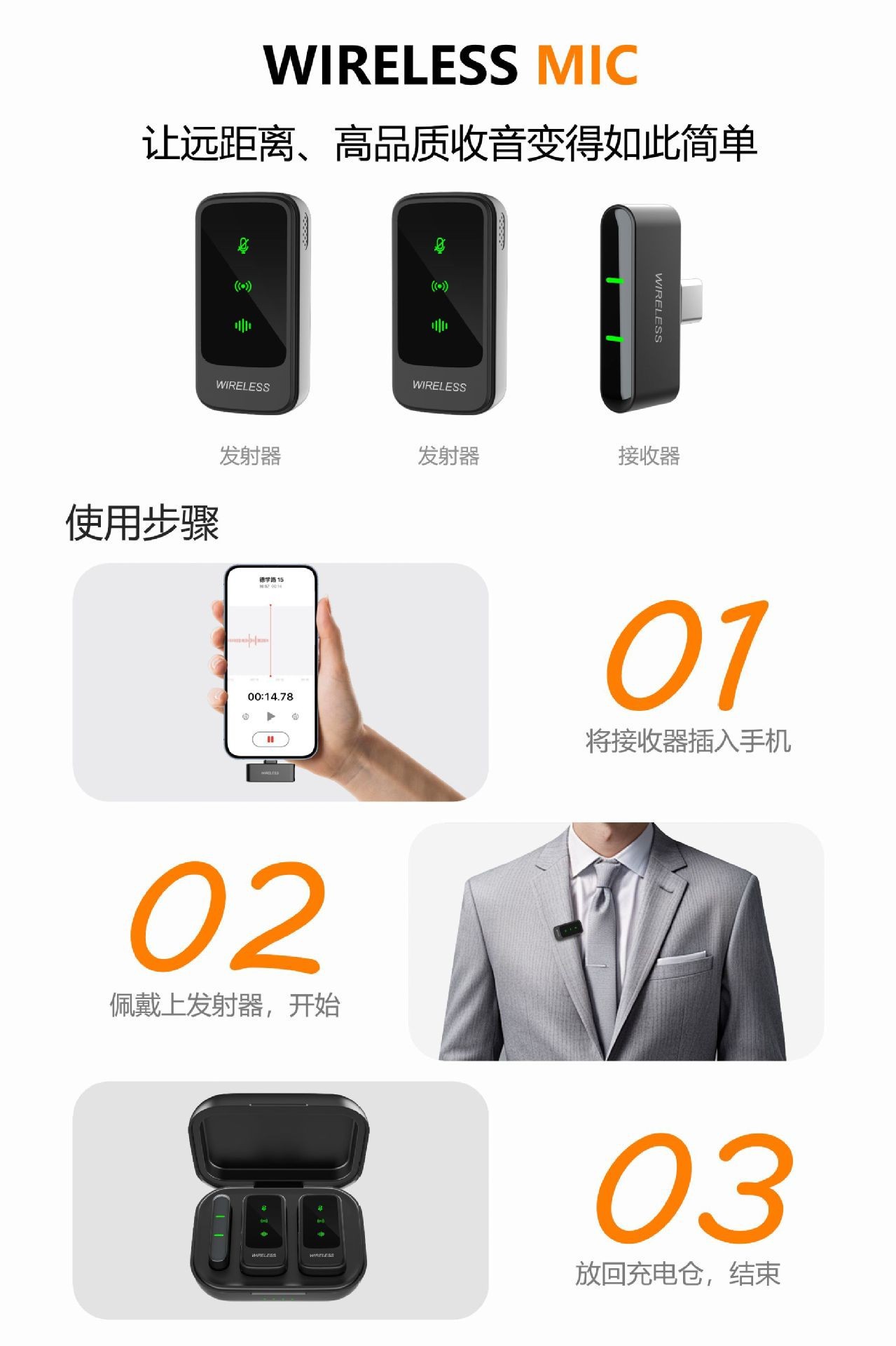 국경 간 새로운 무선 라발리에 마이크 라이브 방송 소음 감소 짧은 비디오