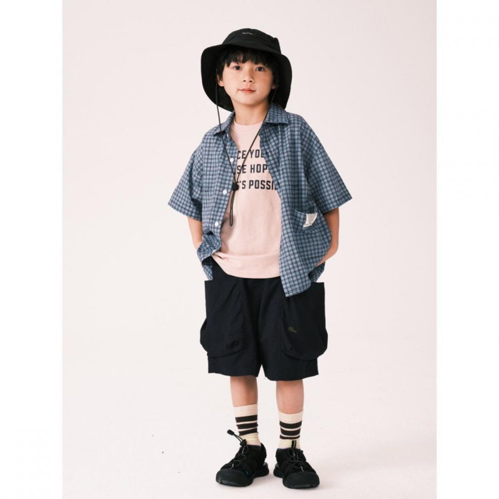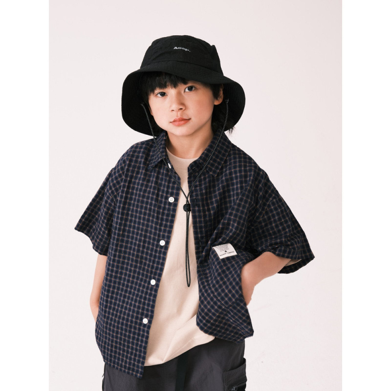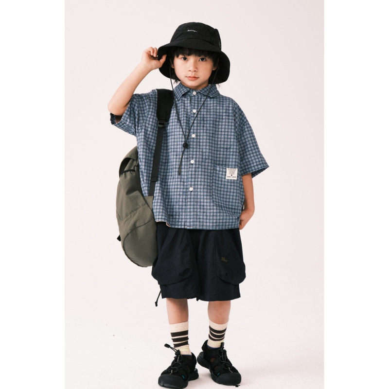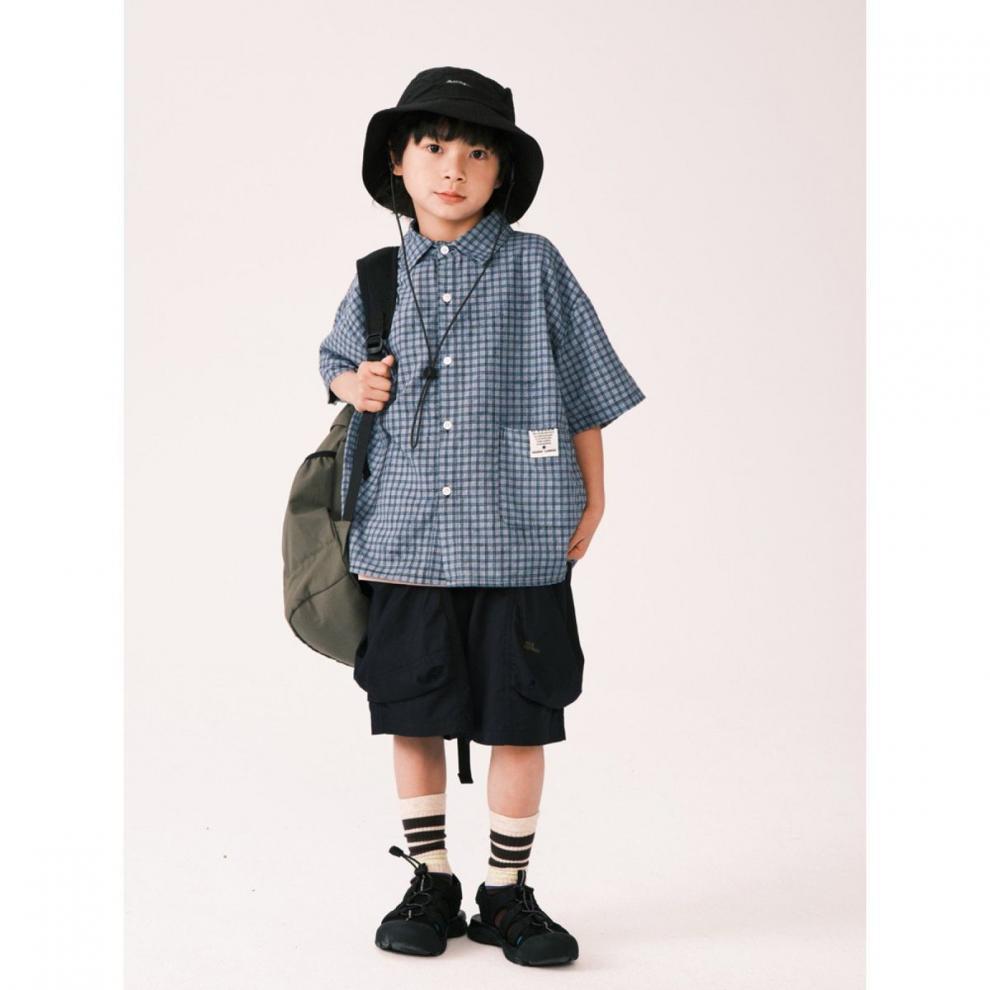아동복 일본 면 셔츠 재킷 새로운 얇은 반팔 격자 무늬 셔츠 아동 한국식 느슨한 통기성 탑스토어 가기