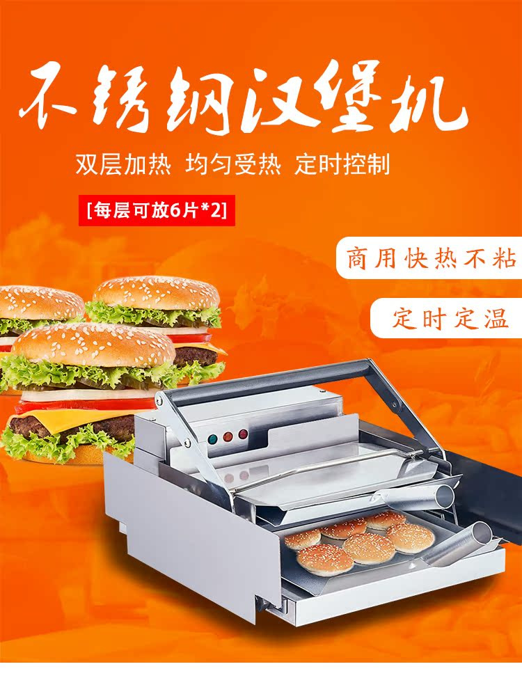 맞춤형 스테인레스 스틸 버거 기계 상업용 완전 자동 더블 레이어 버거 배아 가열 기계 베이커리 장비 대형스토어 가기