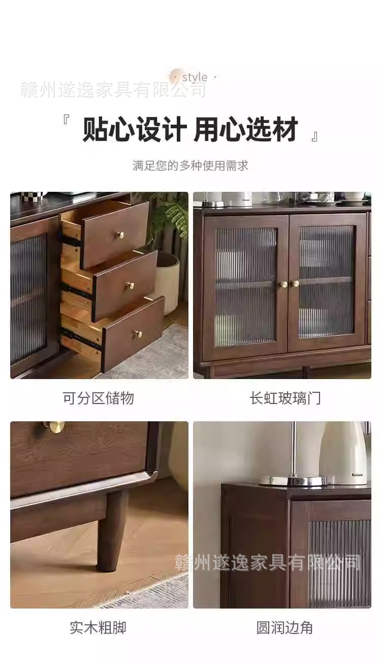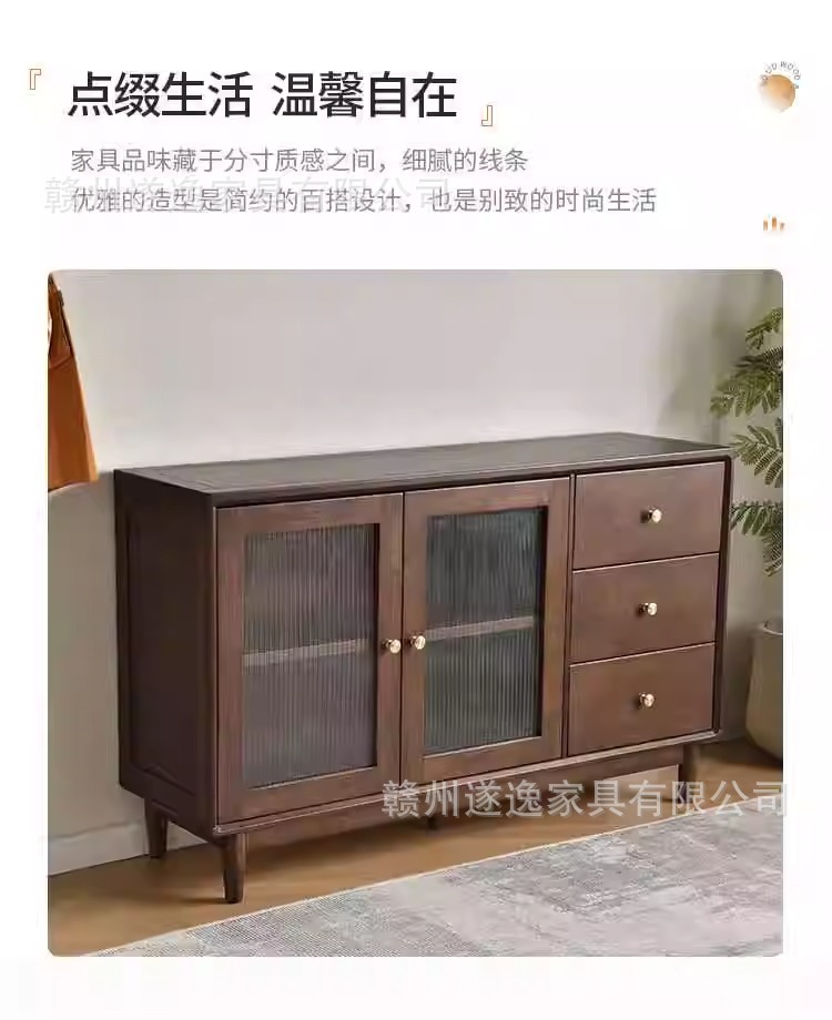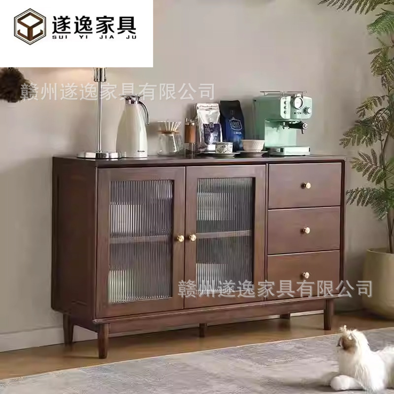 북유럽 단단한 나무 찬장 벽 일체형 현대적인 간단한 차 캐비닛 레스토랑 슬라이딩 도어 서랍 보관 캐비닛