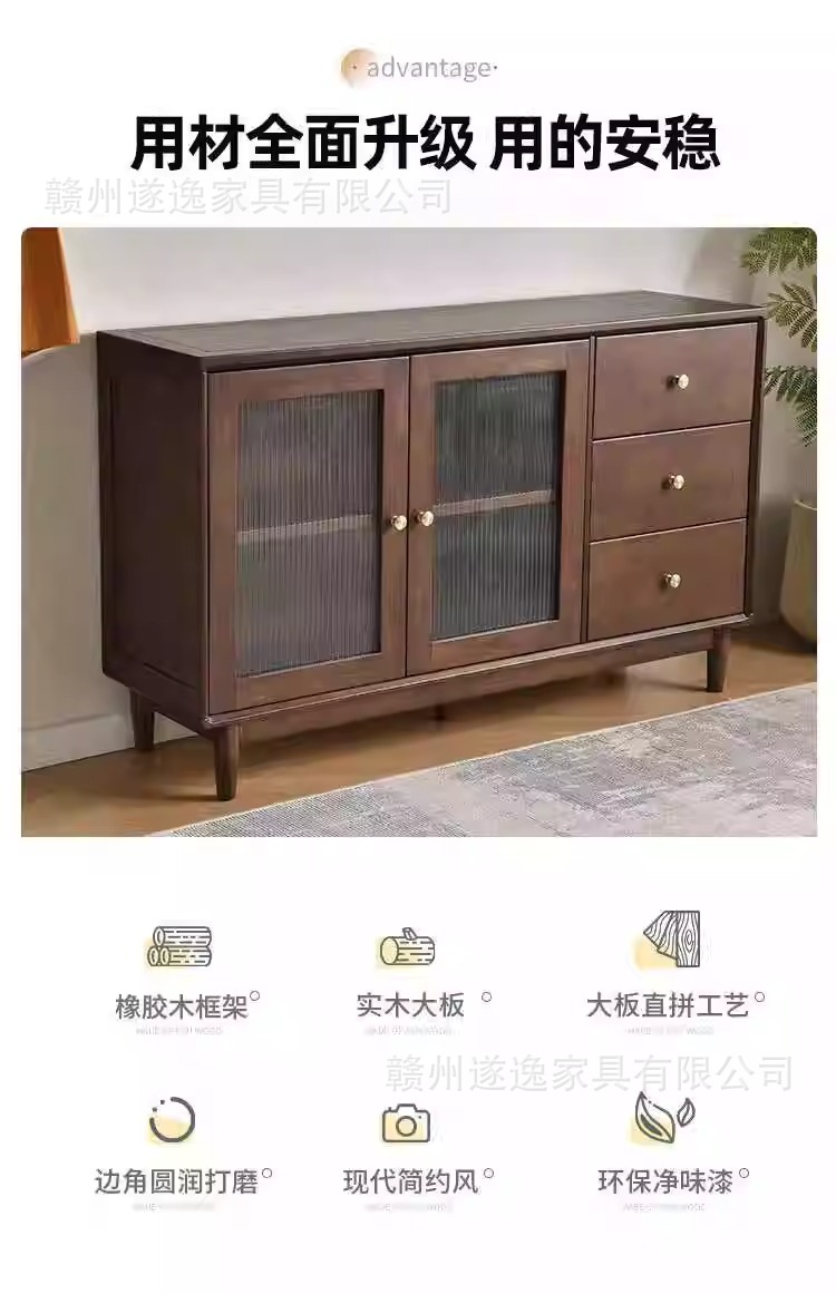 북유럽 단단한 나무 찬장 벽 일체형 현대적인 간단한 차 캐비닛 레스토랑 슬라이딩 도어 서랍 보관 캐비닛스토어 가기