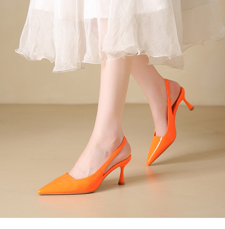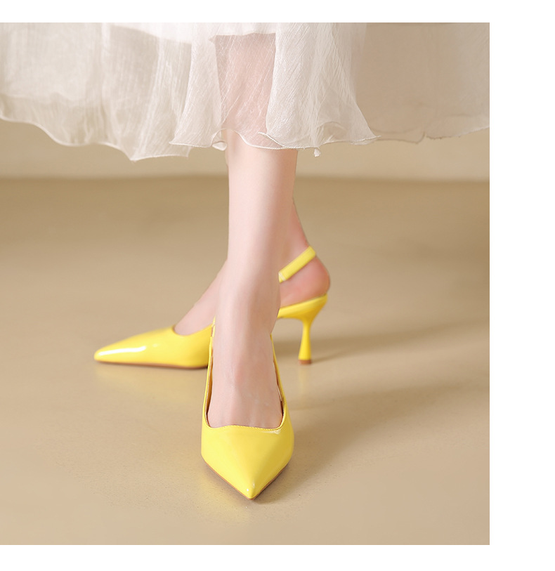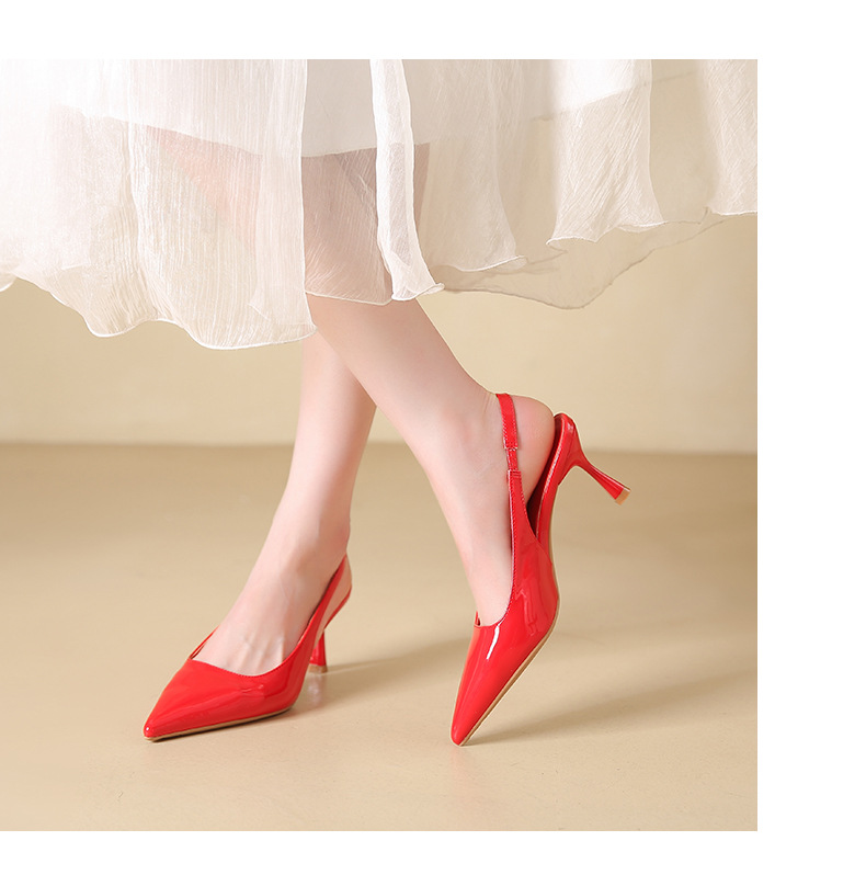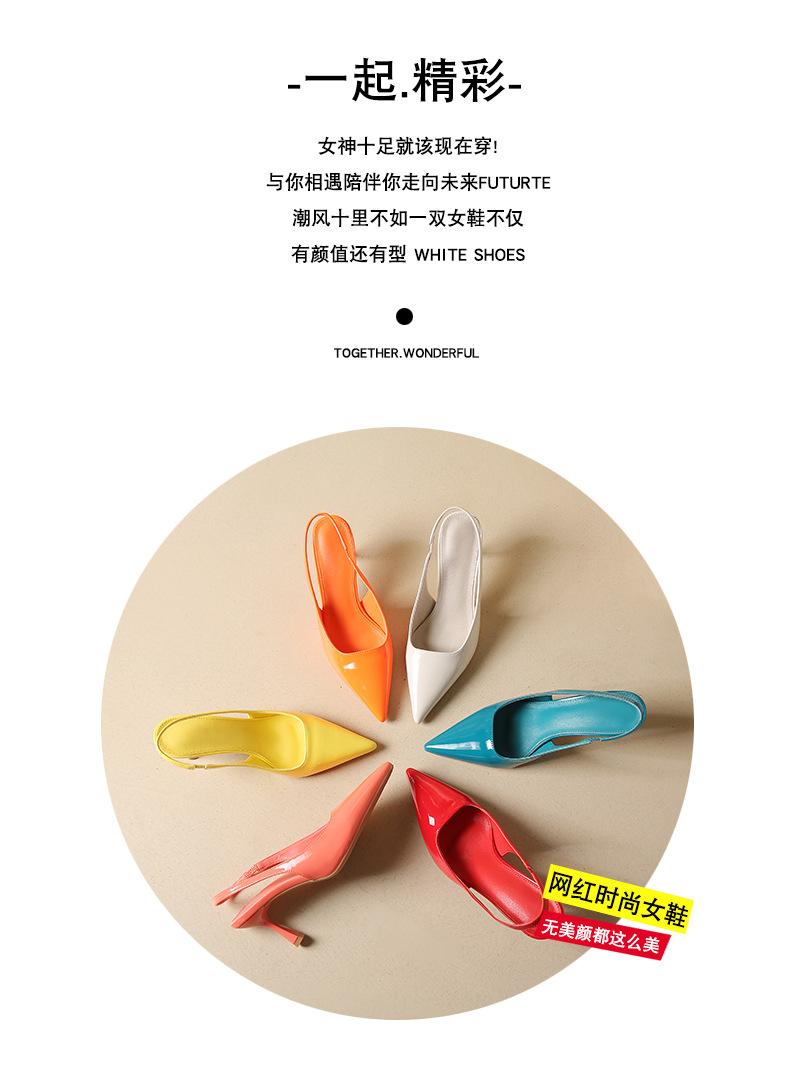 국경 간 여름 솔리드 컬러 여성 하이힐 2025 패션 도파민 포인트 반 슬리퍼 샌들 라이트 럭셔리 연회 신발