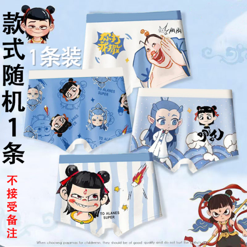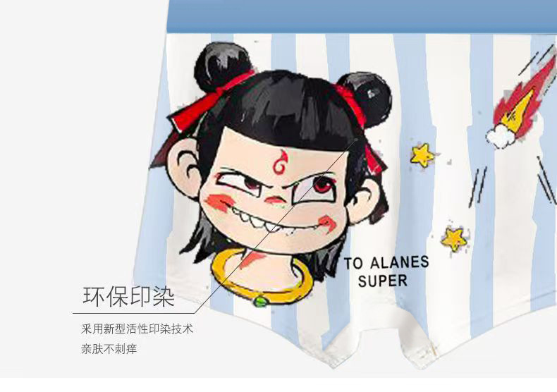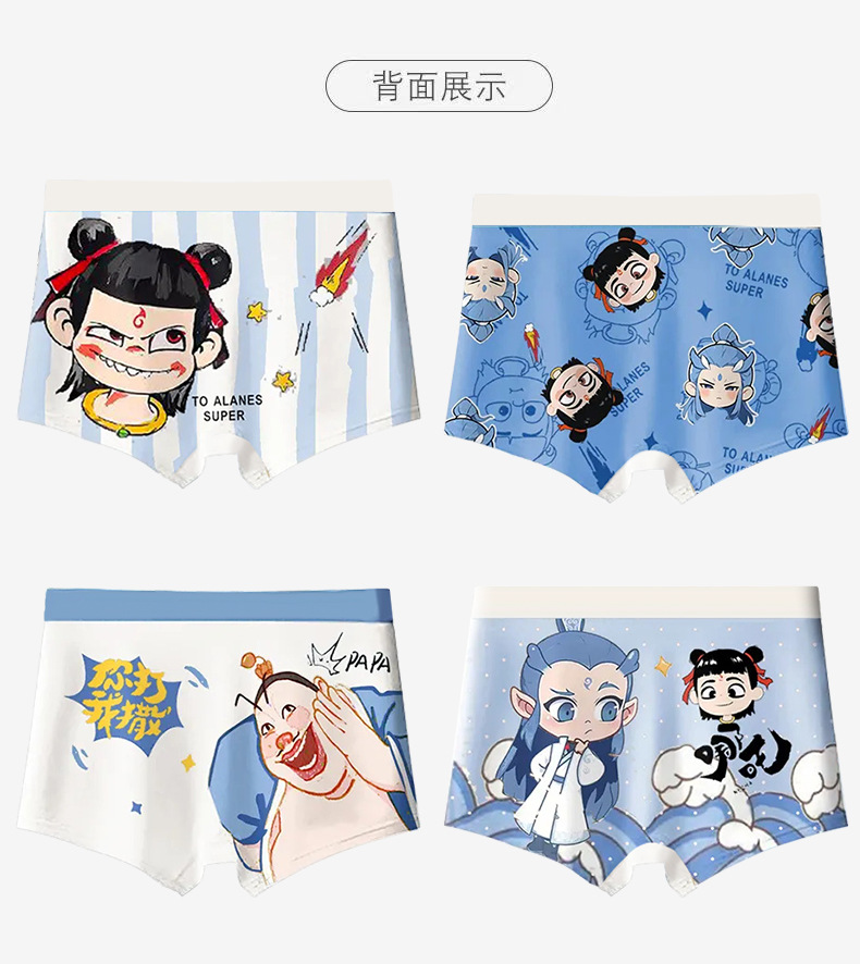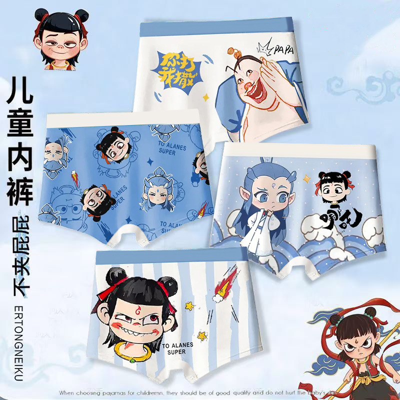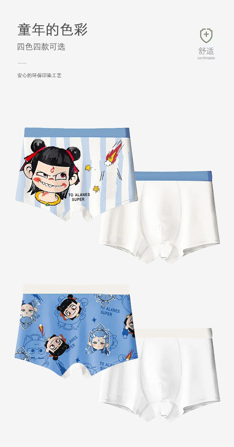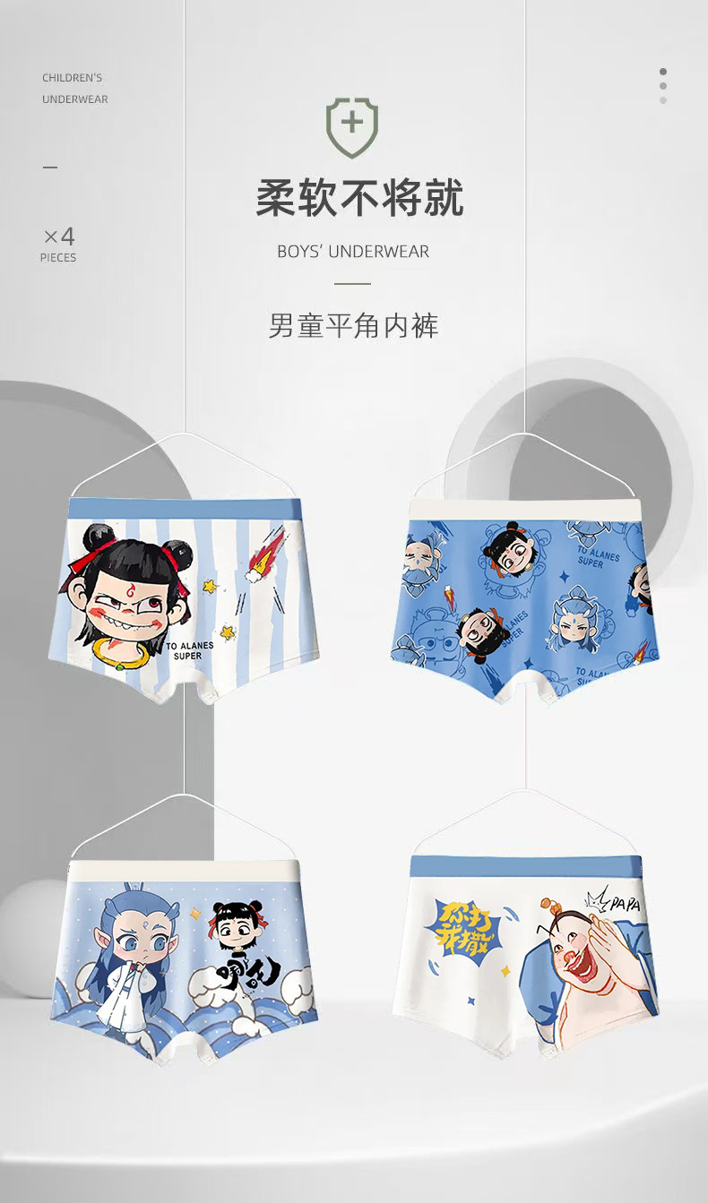 (4팩) 남아용 팬티, 사각팬티, 중대형 아동용, 어린 남아용 반바지, 사각팬티, Nezha 2025 새로운 스타일스토어 가기