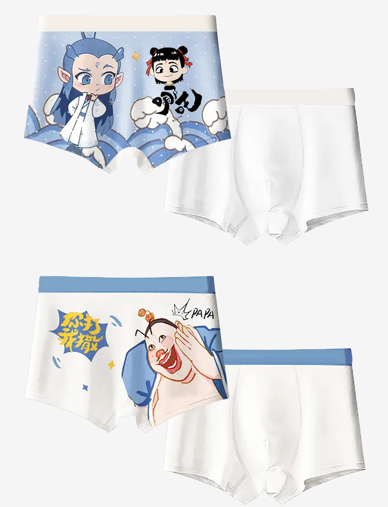(4팩) 남아용 팬티, 사각팬티, 중대형 아동용, 어린 남아용 반바지, 사각팬티, Nezha 2025 새로운 스타일