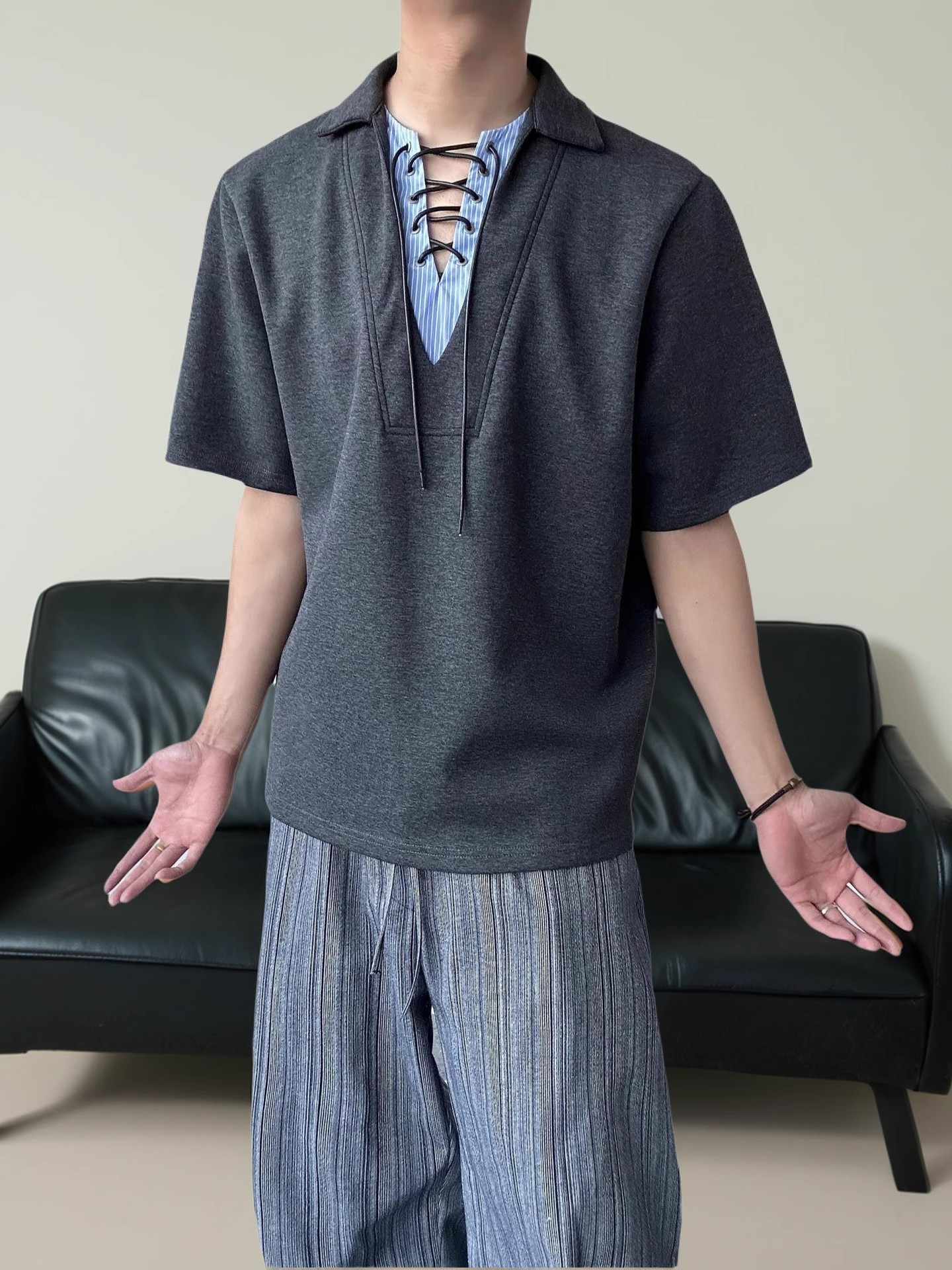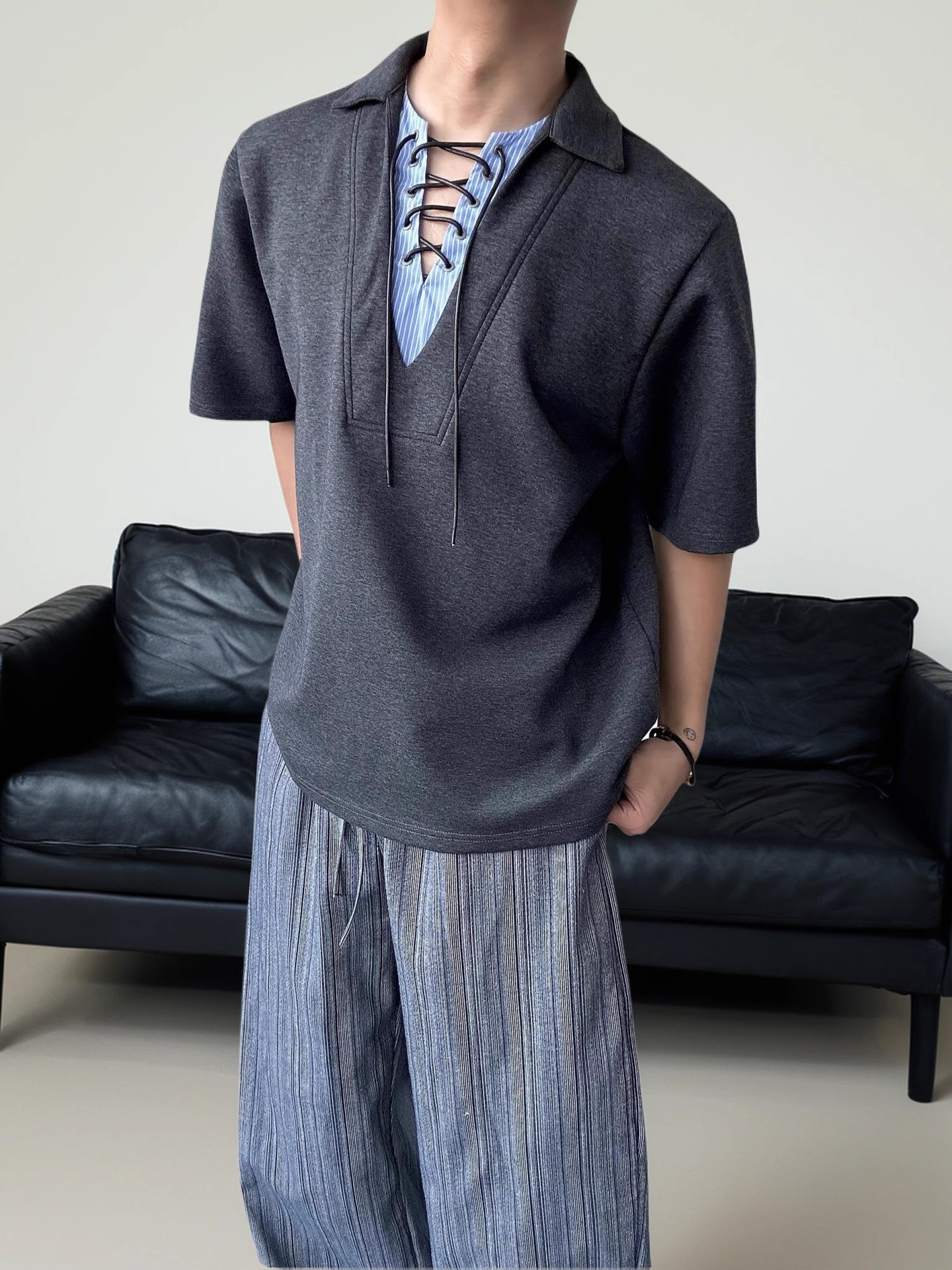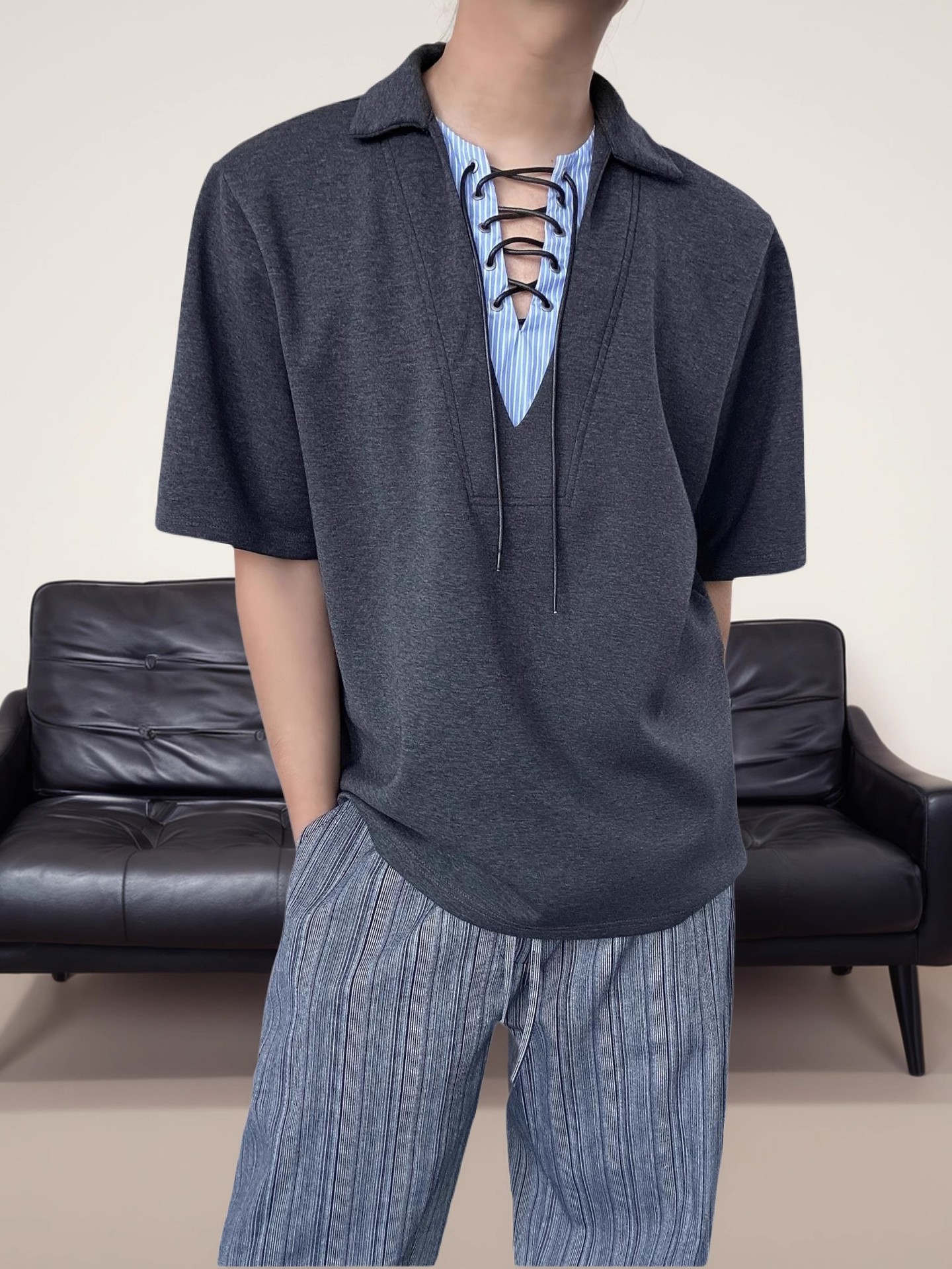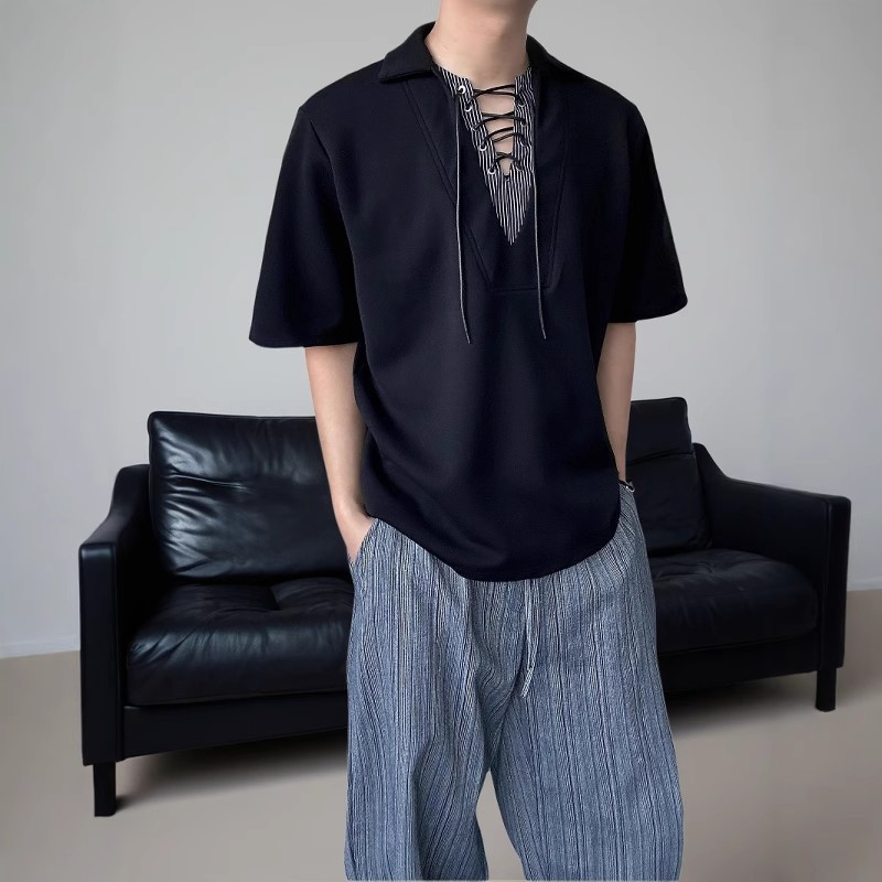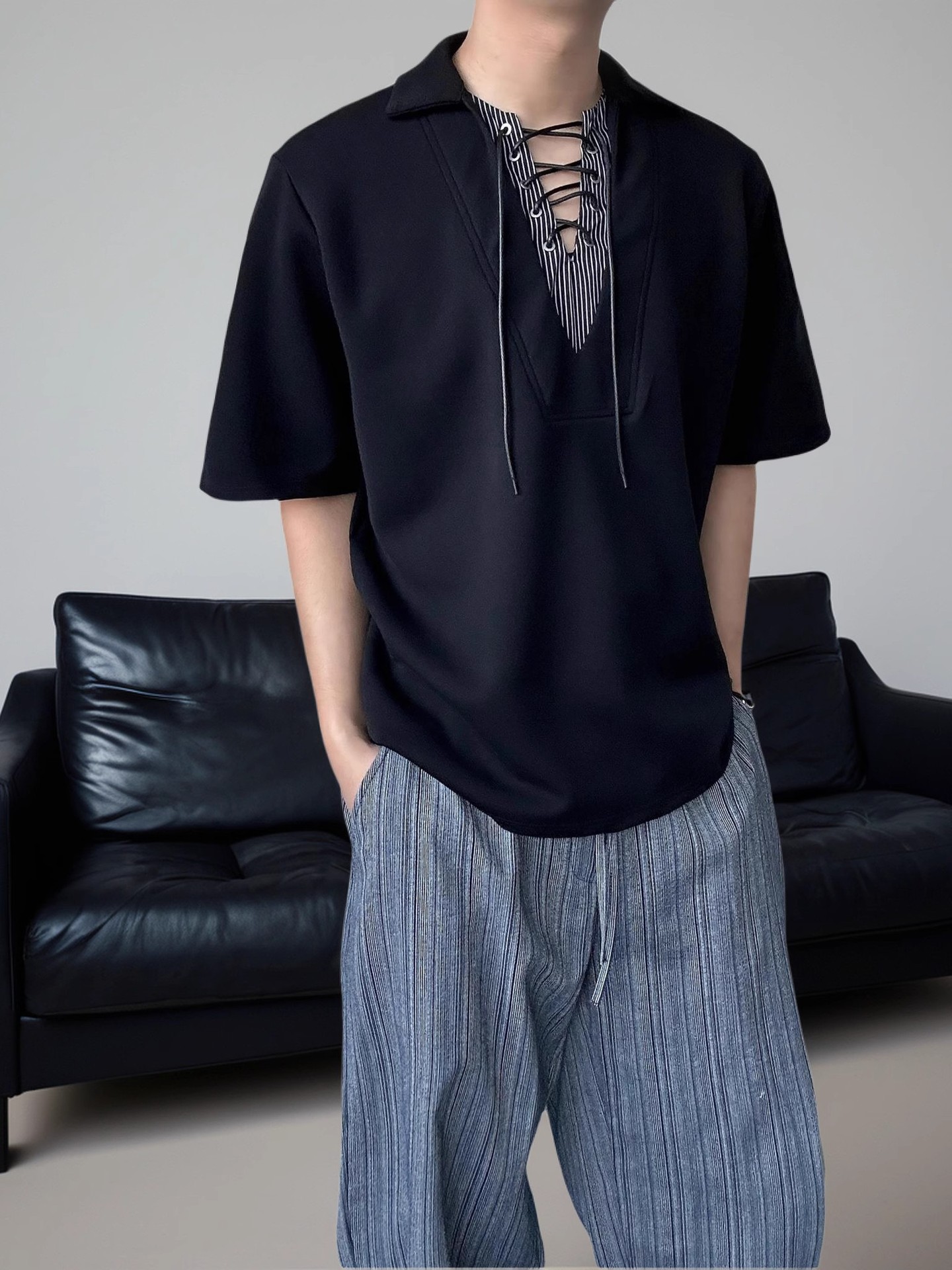 미국식 가짜 투피스 스티칭 칼라 반팔 남자 여름 느슨한 디자인 센스 셔츠 캐주얼 올 매치 반소매 셔츠