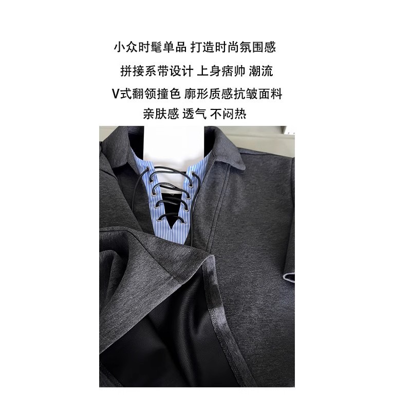 미국식 가짜 투피스 스티칭 칼라 반팔 남자 여름 느슨한 디자인 센스 셔츠 캐주얼 올 매치 반소매 셔츠스토어 가기