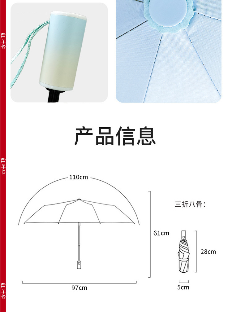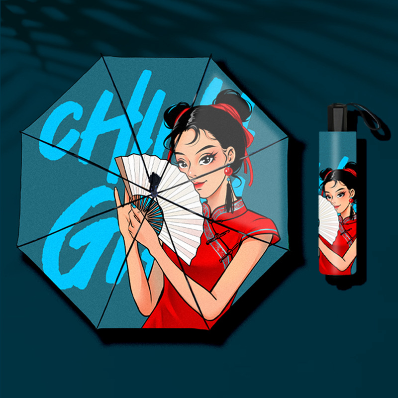 Hongye 70% off 비 또는 빛 디지털 인쇄 그라데이션 여성용 두꺼운 비닐 자외선 차단제 및 자외선 차단 비 또는 빛 우산