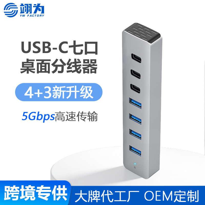 크로스보더 7포트 허브 3.0 타입C 7-in-1 노트북 분배기 전원 공급 USB 확장 도크스토어 가기