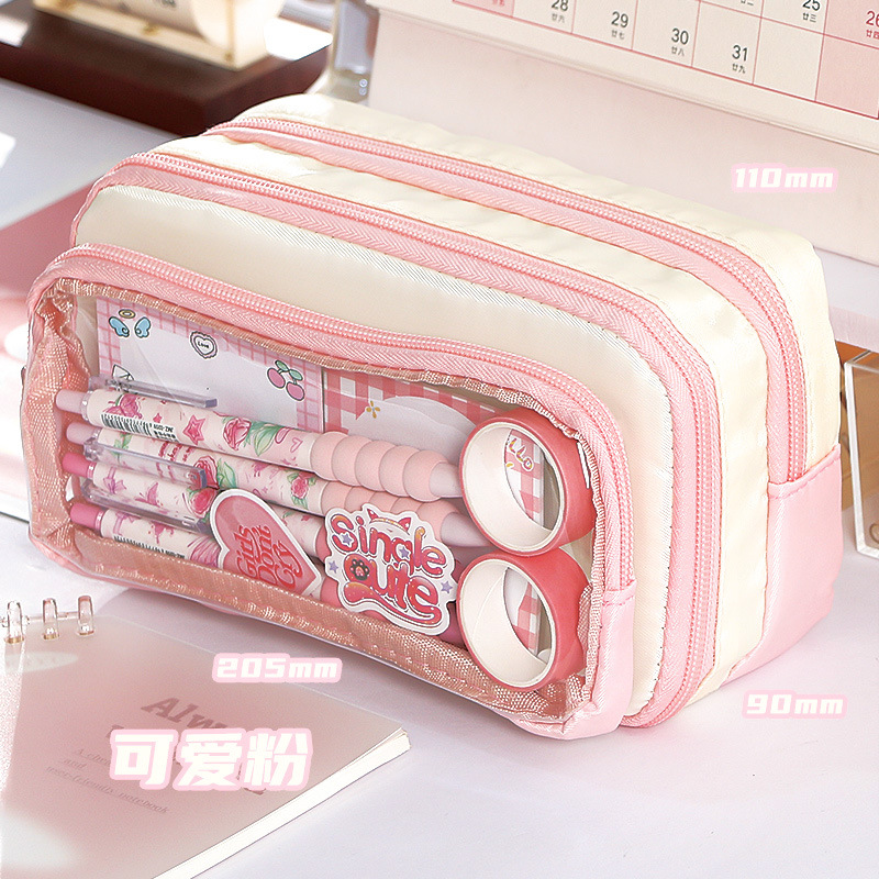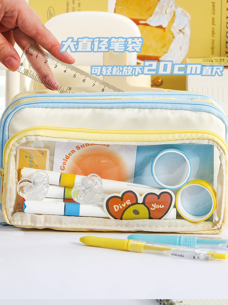대용량 투명 도파민 이동식 콘트라스트 컬러 연필 케이스 간단한 새로운 스타일 높은 컬러 값 통증 가방 문구 가방