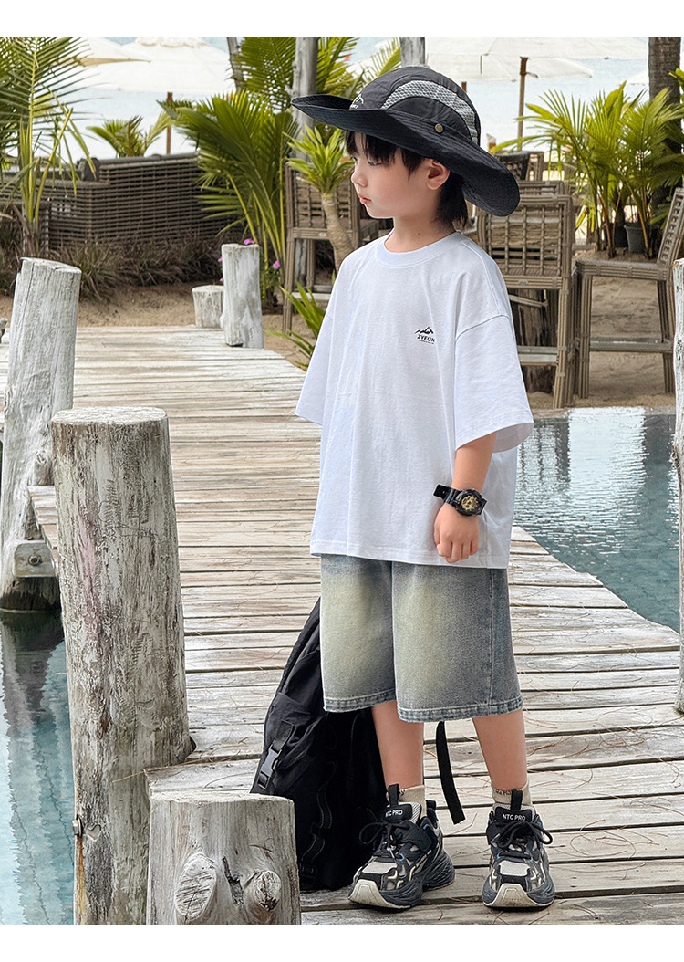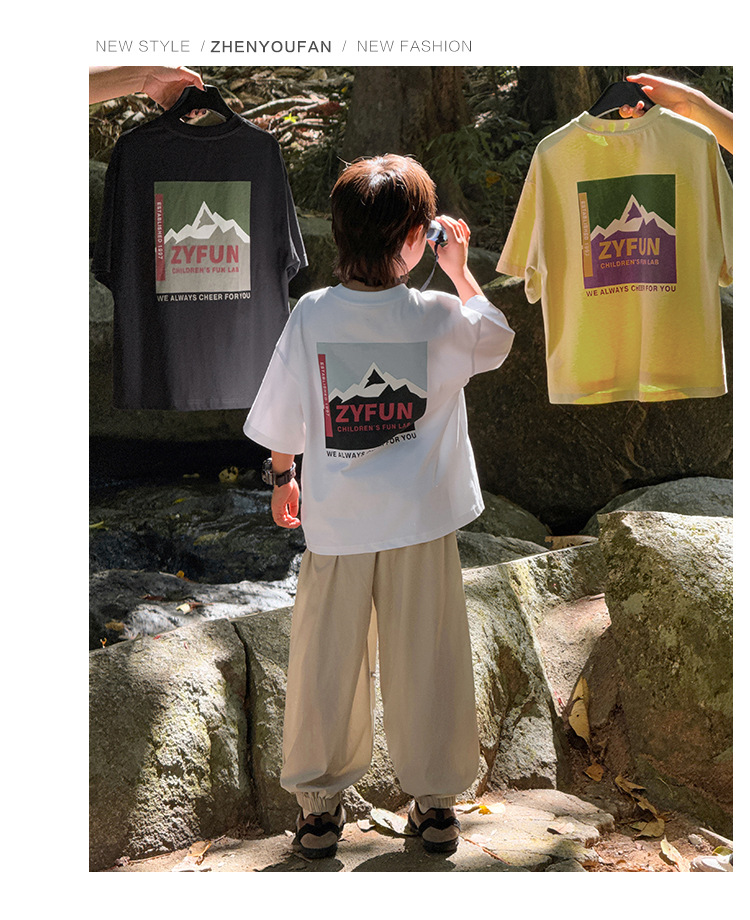 아동복 남아 순면 반팔 티셔츠 2026 여름 신상품 아동용 시원한 상의 큰아이 여름 반팔옷스토어 가기