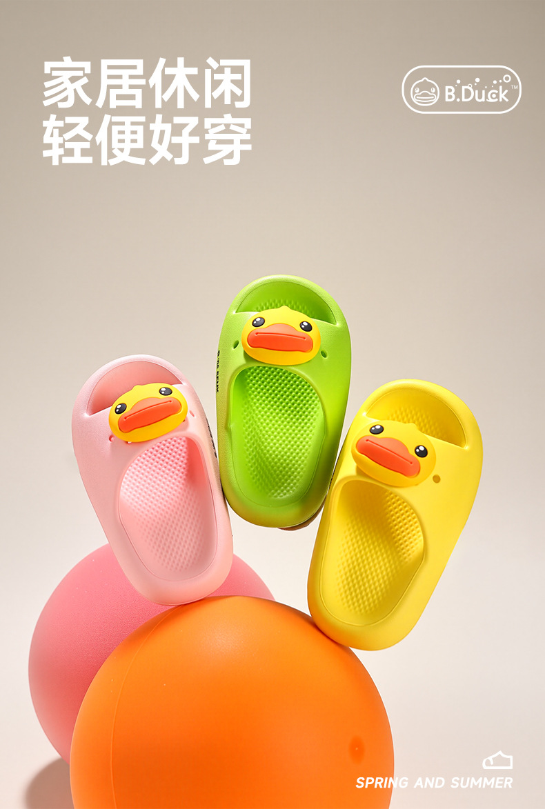 B.Duck 작은 노란색 오리 어린이 신발 소년과 소녀 슬리퍼 어린이 샌들 여름 아기 신발 홈 부드러운 바닥 슬리퍼스토어 가기