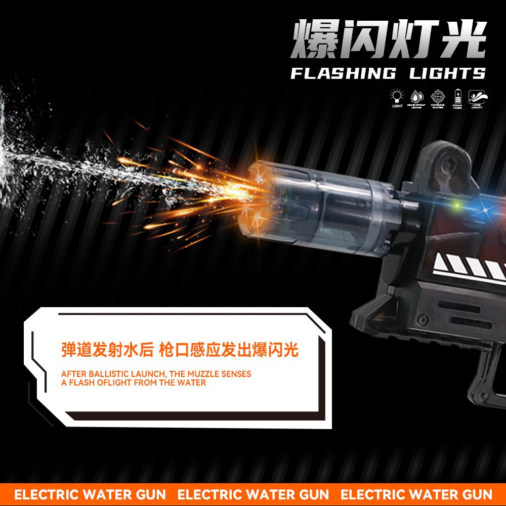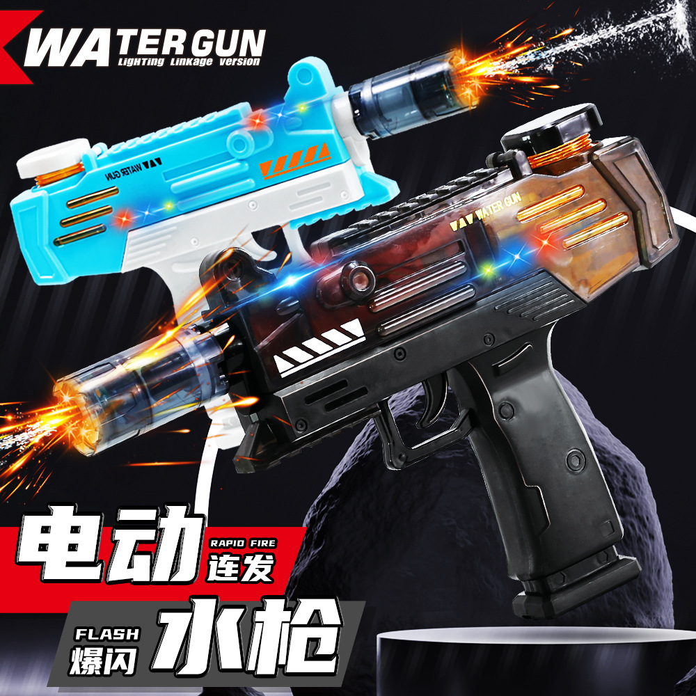 국경 간 인기 Uzi 펄스 전기 물총 유도 조명 자동 물 흡수 어린이 장난감 연속 물총 도매스토어 가기