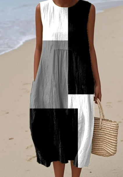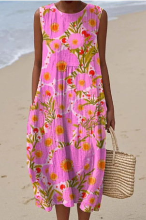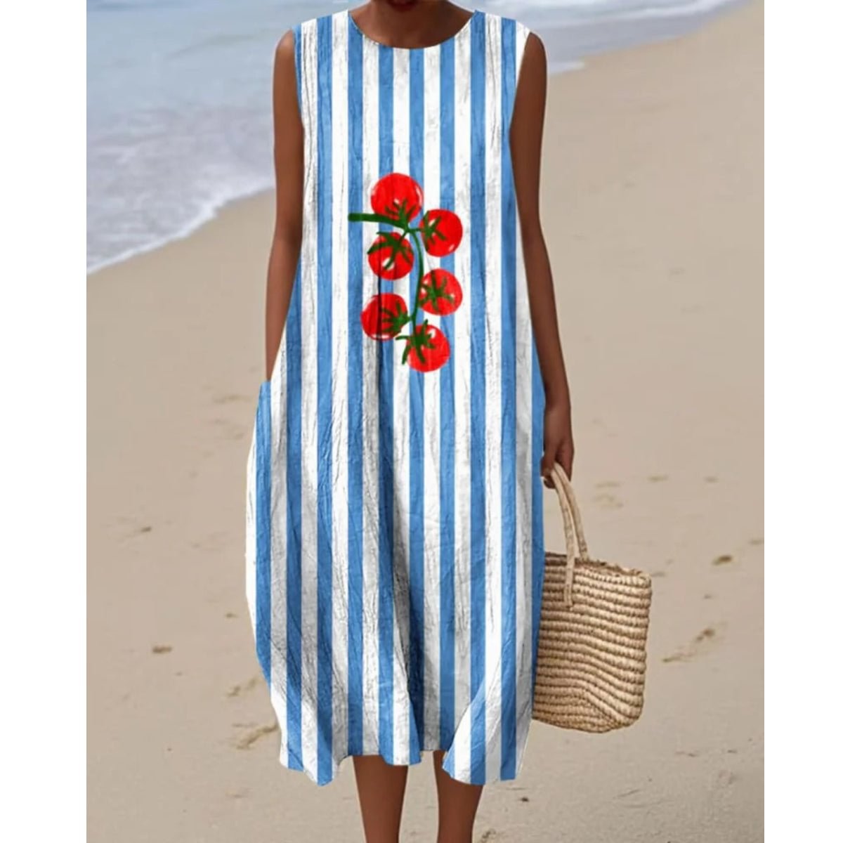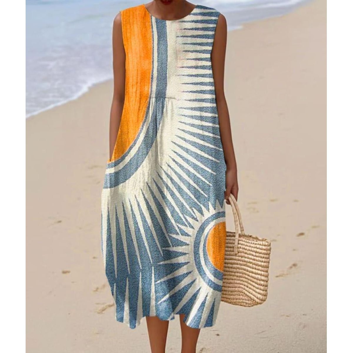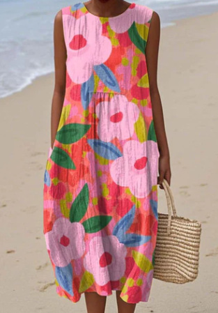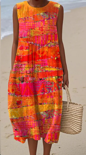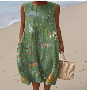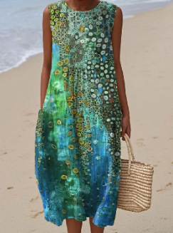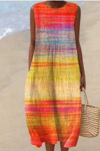 국경 간 새로운 Amazon 독립 스테이션 3D 프린트 라운드 넥 풀오버 세련되고 인기 있는 여성 여름 민소매 드레스