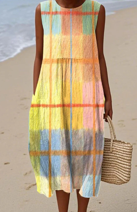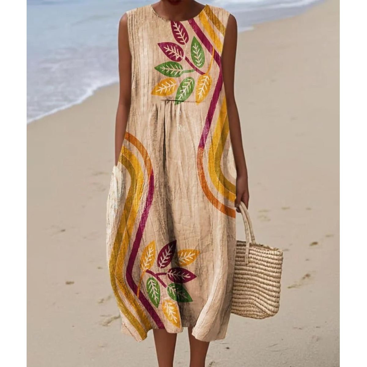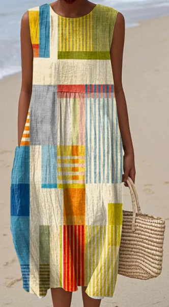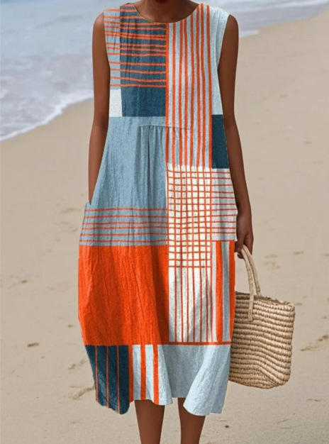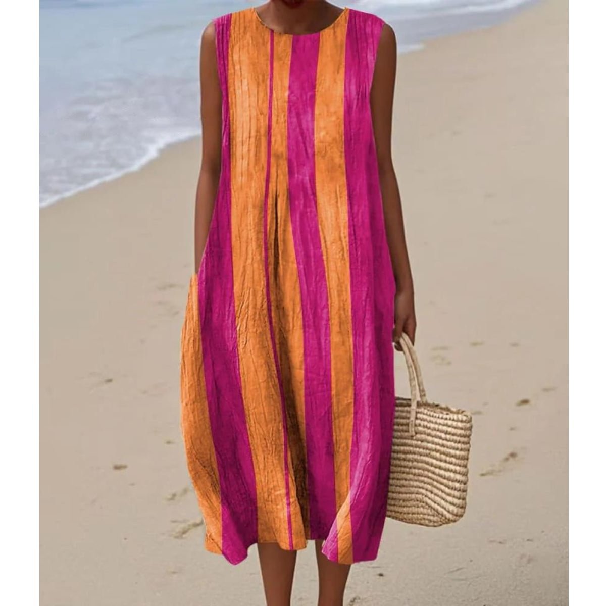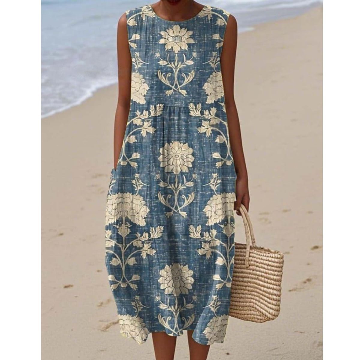 국경 간 새로운 Amazon 독립 스테이션 3D 프린트 라운드 넥 풀오버 세련되고 인기 있는 여성 여름 민소매 드레스