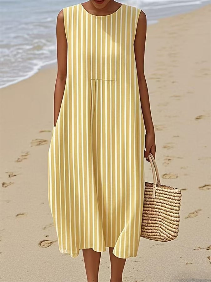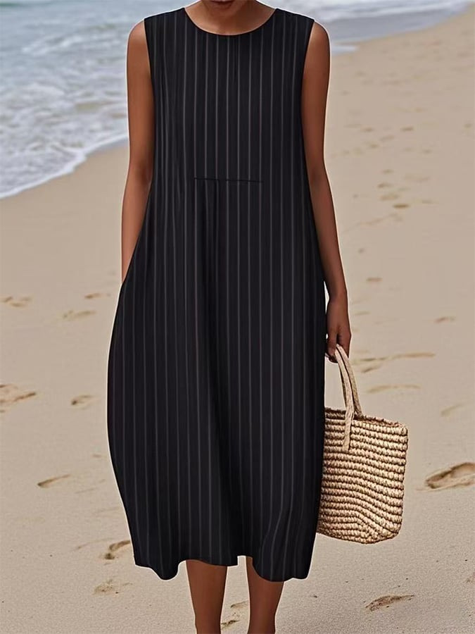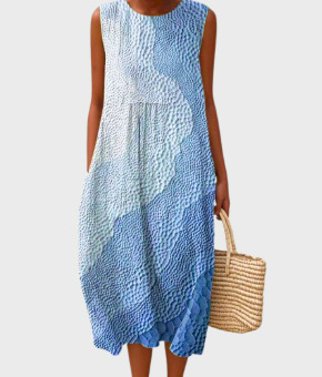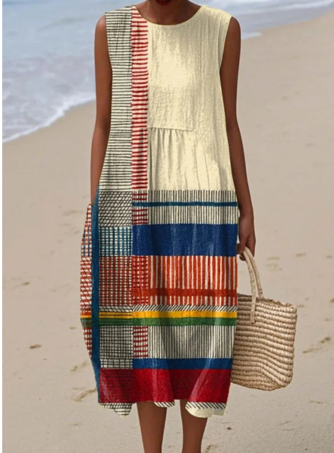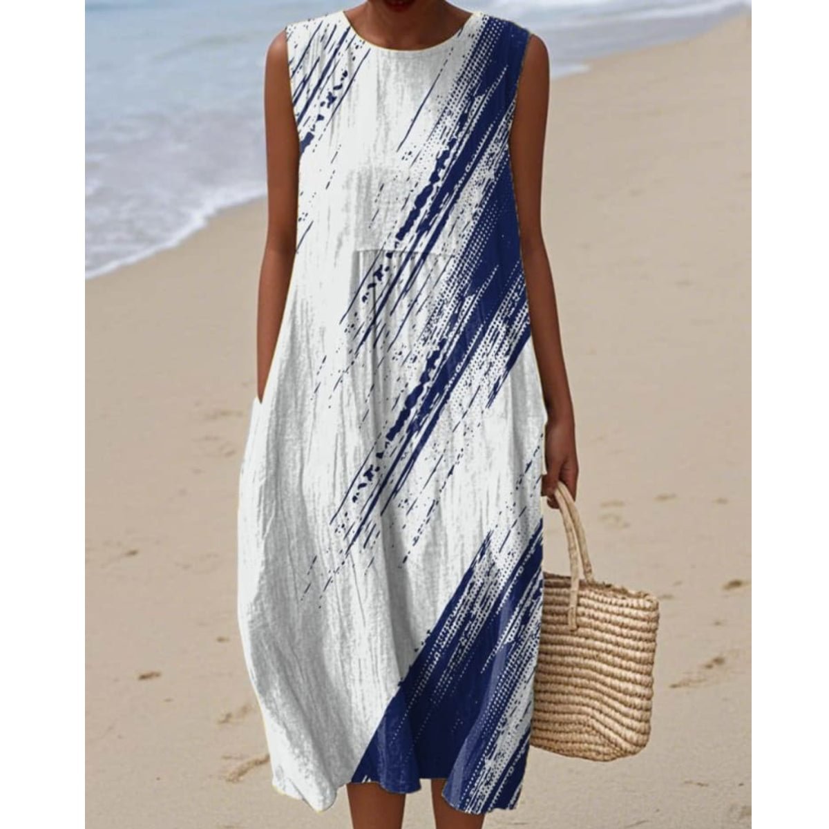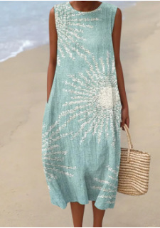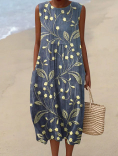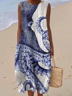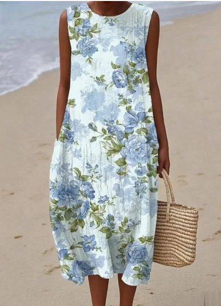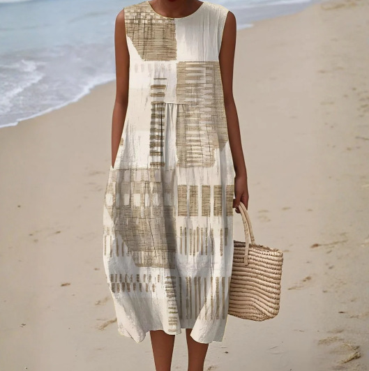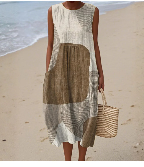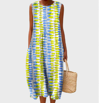 국경 간 새로운 Amazon 독립 스테이션 3D 프린트 라운드 넥 풀오버 세련되고 인기 있는 여성 여름 민소매 드레스스토어 가기