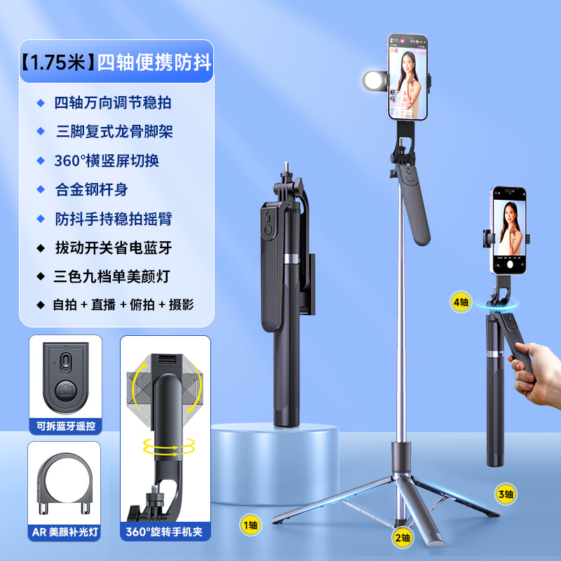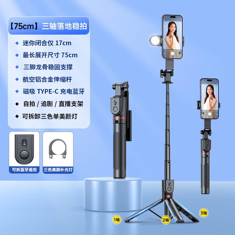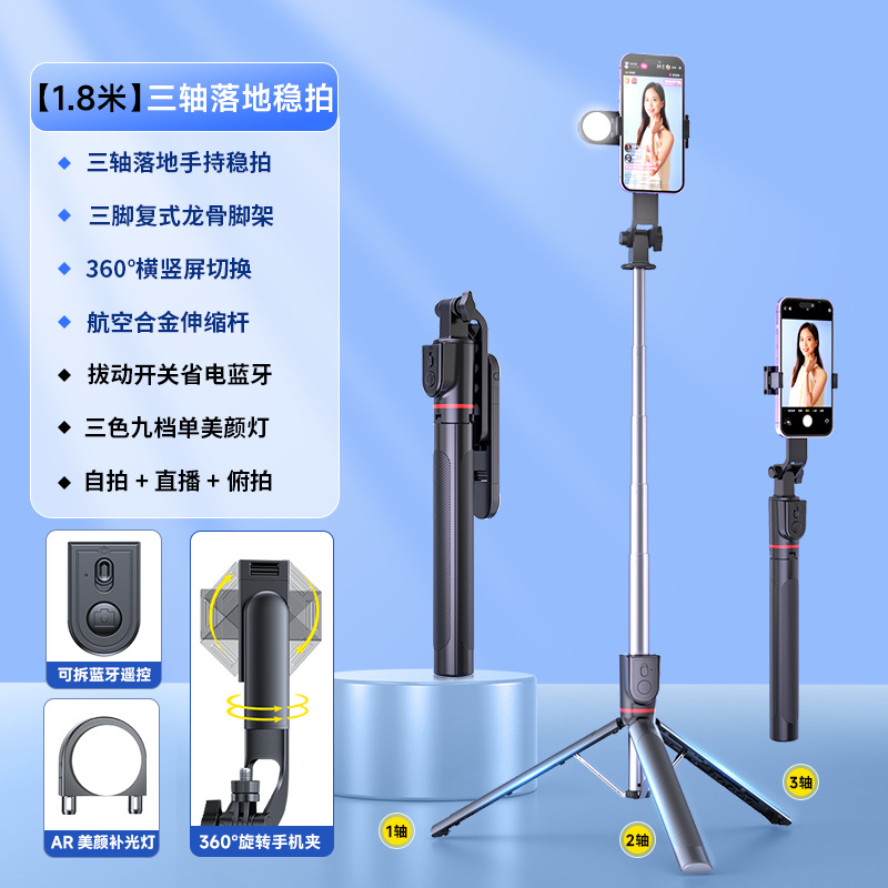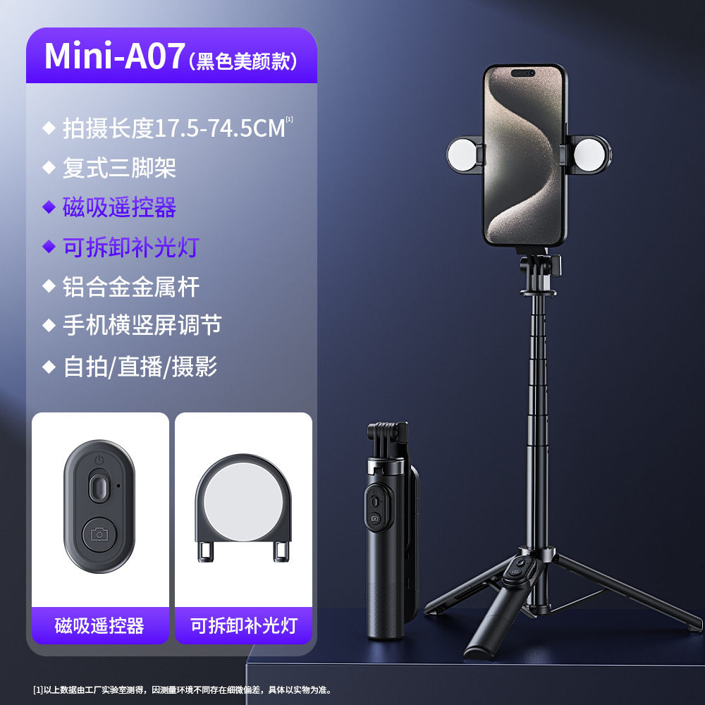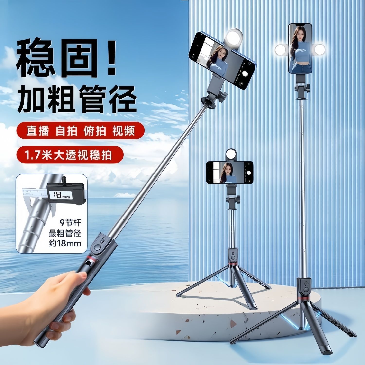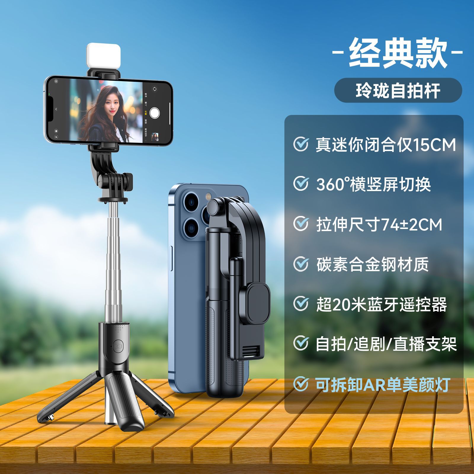 셀카봉 블루투스 리모컨 야외 라이브 방송 여행 필수품 휴대용 컴팩트 휴대폰 스탠드 조명 기능 세로 촬영