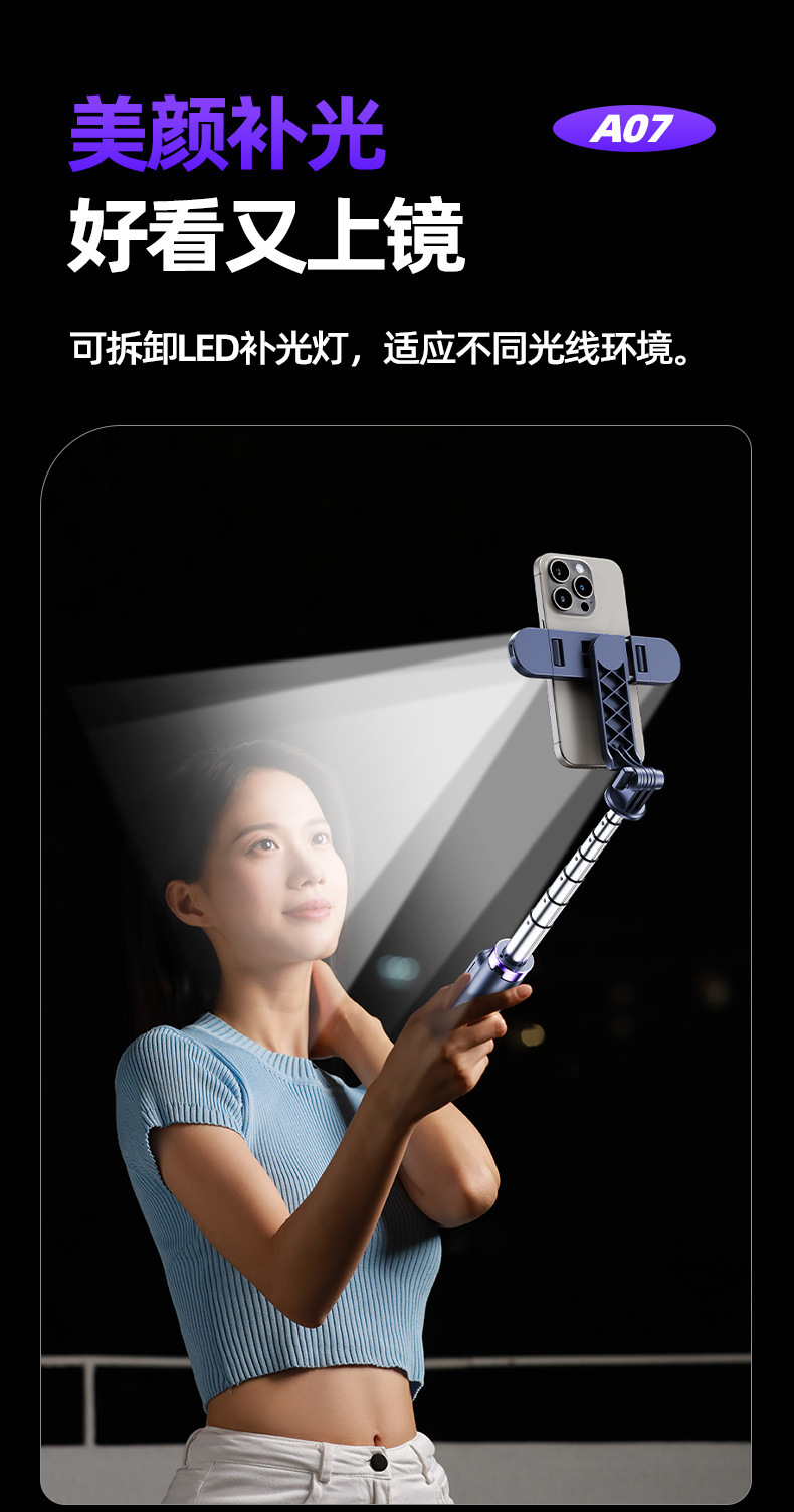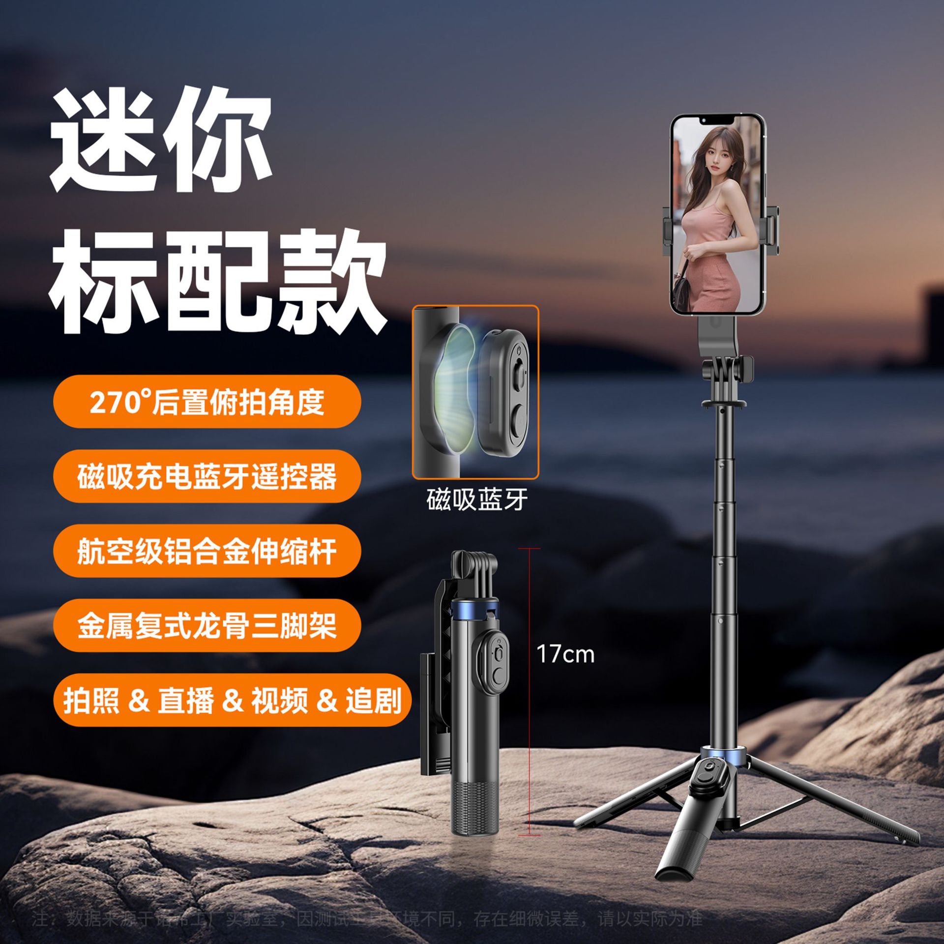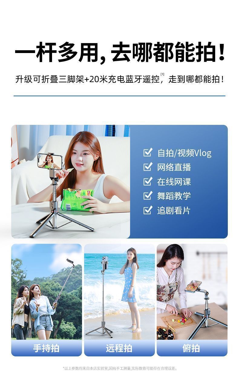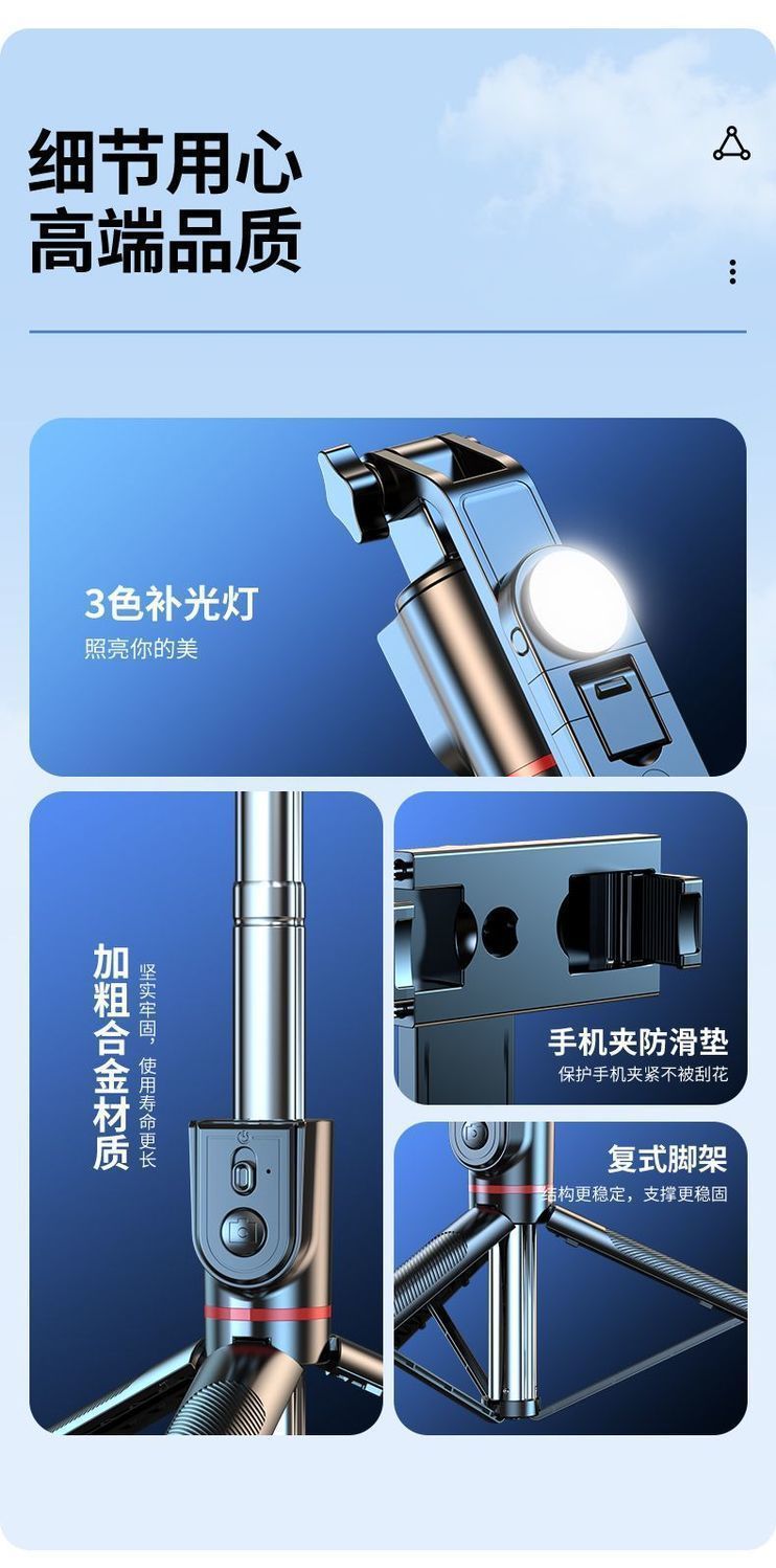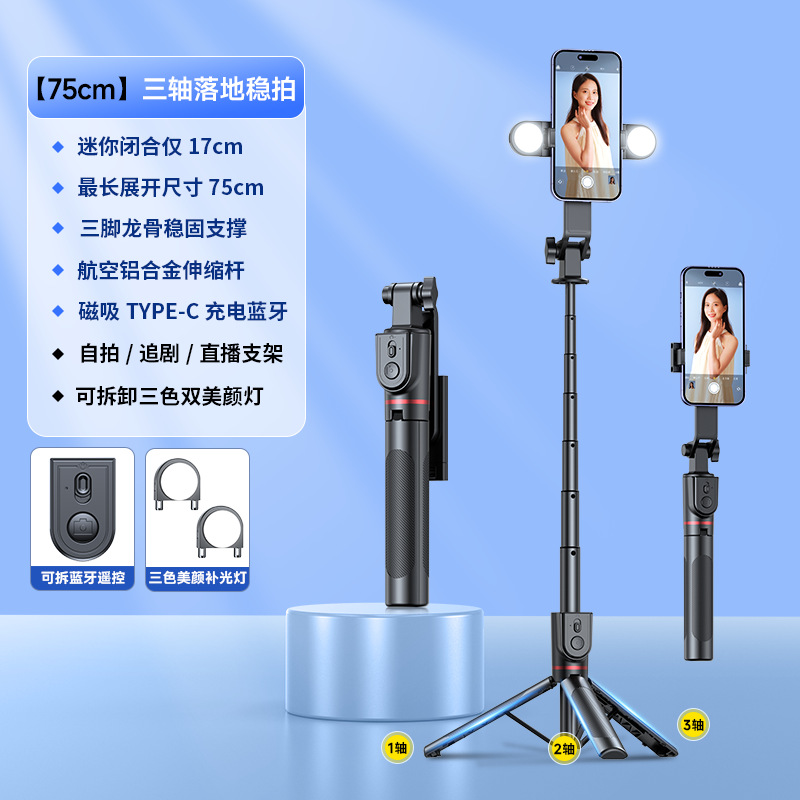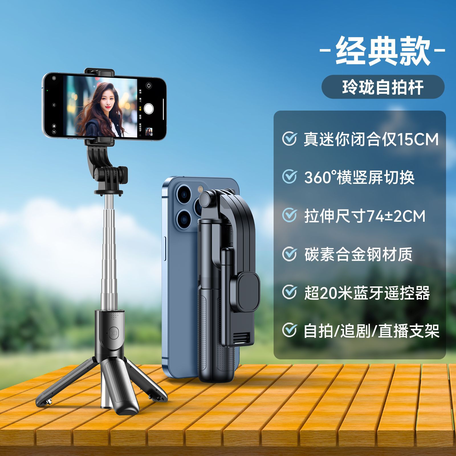 셀카봉 블루투스 리모컨 야외 라이브 방송 여행 필수품 휴대용 컴팩트 휴대폰 스탠드 조명 기능 세로 촬영