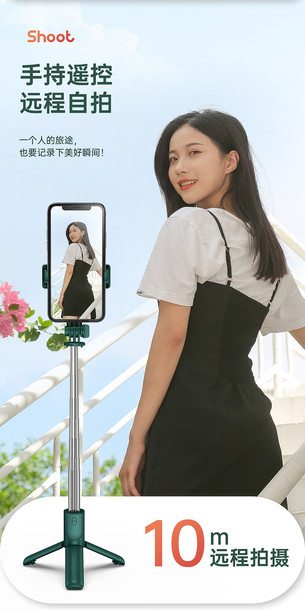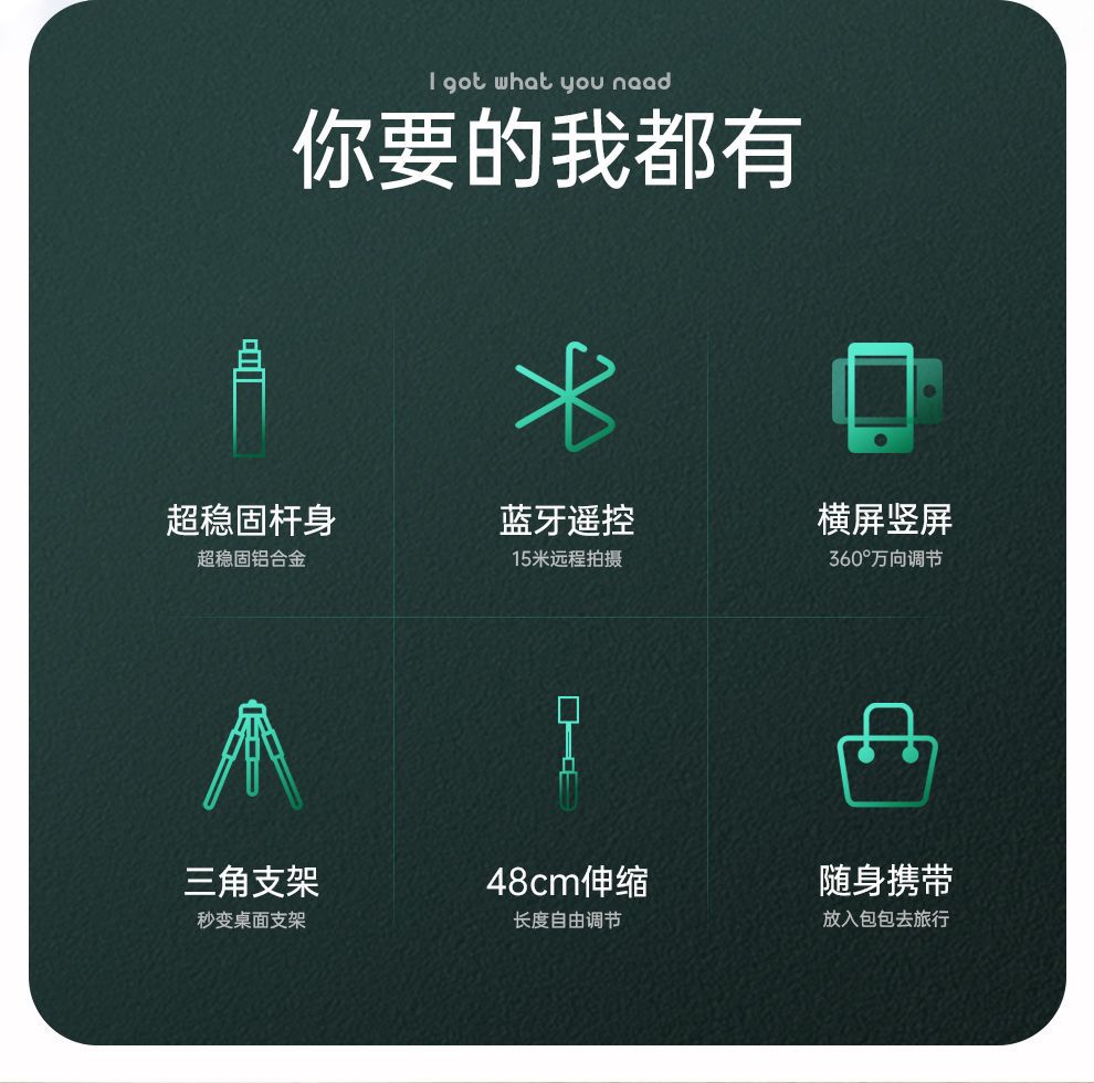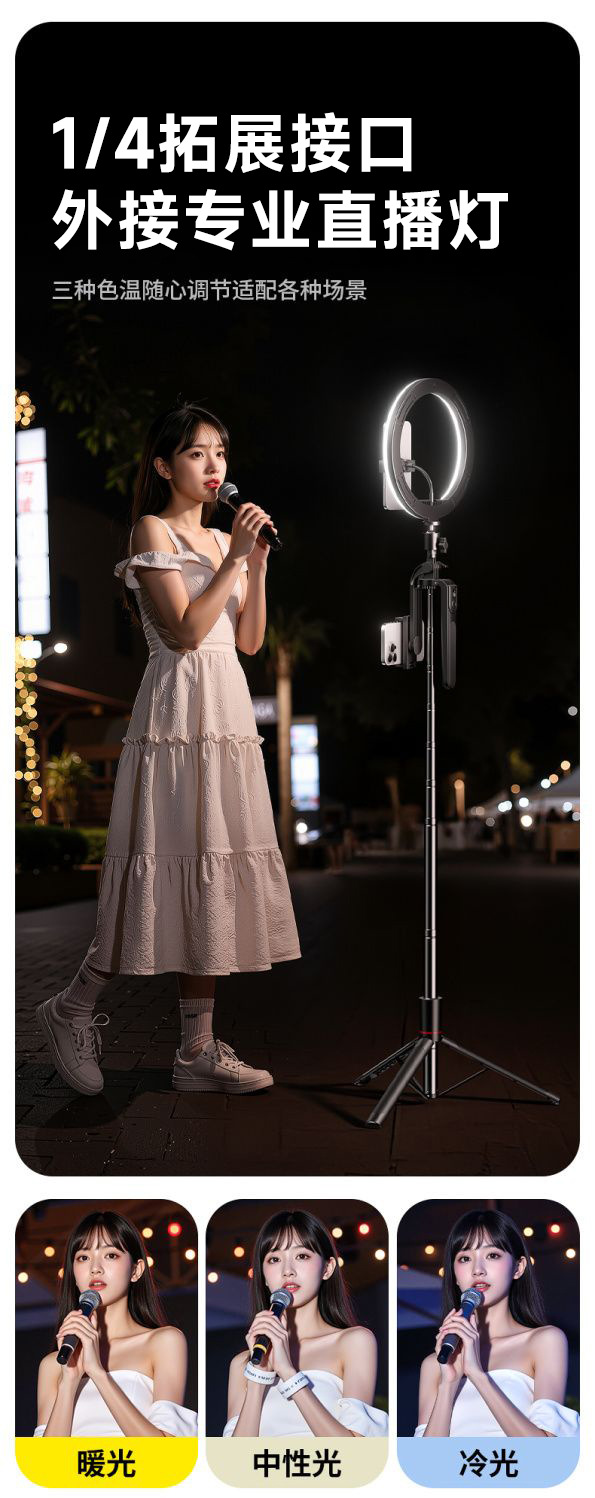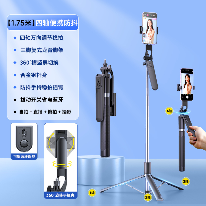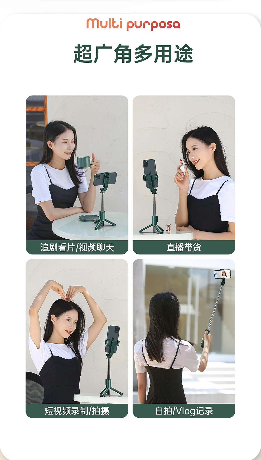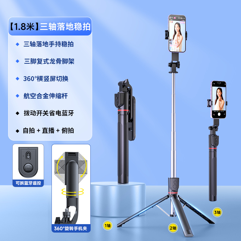 셀카봉 블루투스 리모컨 야외 라이브 방송 여행 필수품 휴대용 컴팩트 휴대폰 스탠드 조명 기능 세로 촬영