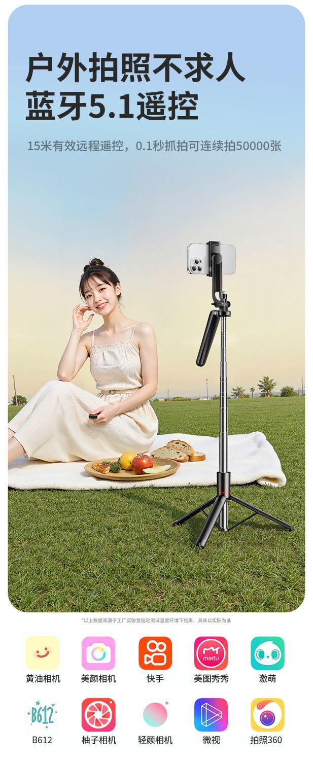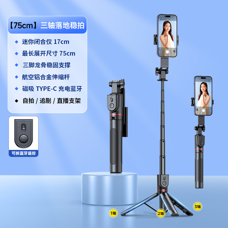 셀카봉 블루투스 리모컨 야외 라이브 방송 여행 필수품 휴대용 컴팩트 휴대폰 스탠드 조명 기능 세로 촬영스토어 가기