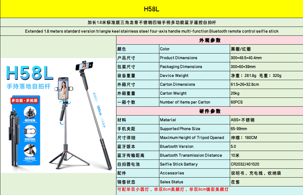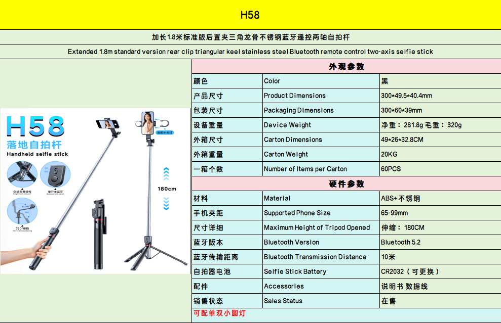 • 셀카봉 H58LS-D 블랙 [이중소형원형등]