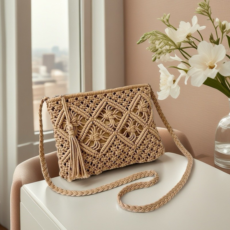 공장 간단한 술 휴대용 밀짚 짠 가방 레트로 핸드 헬드 짠 가방 여름 비치 가방 어깨 휴대용 캐주얼