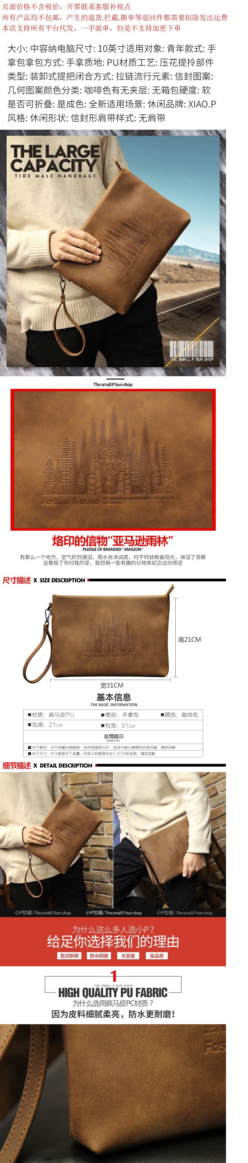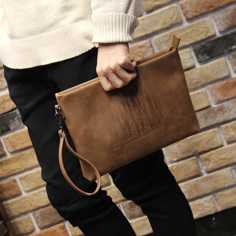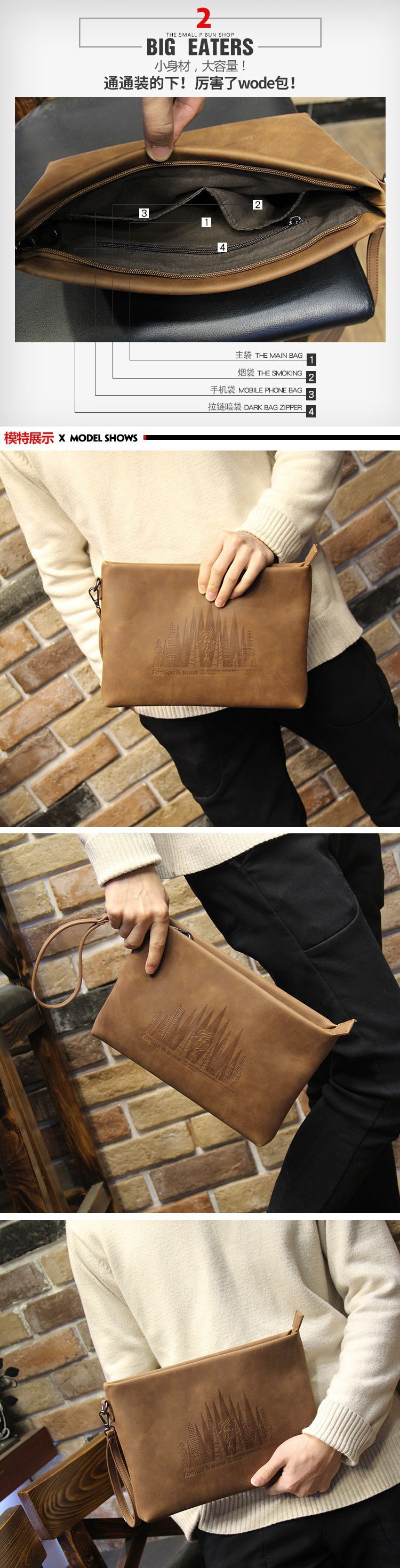 신상 남성용 핸드백, 남성용 가방, 대용량 클러치백, 봉투가방, 부드러운 가죽 캐주얼 클립백, 한국식 크레이지 호스 가죽스토어 가기