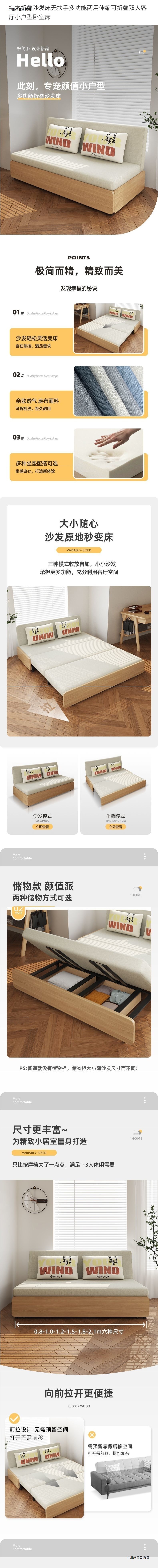 [절묘한 디자인] 팔걸이가 없는 원목 접이식 소파 베드, 다기능 이중 목적 접이식 더블 거실스토어 가기