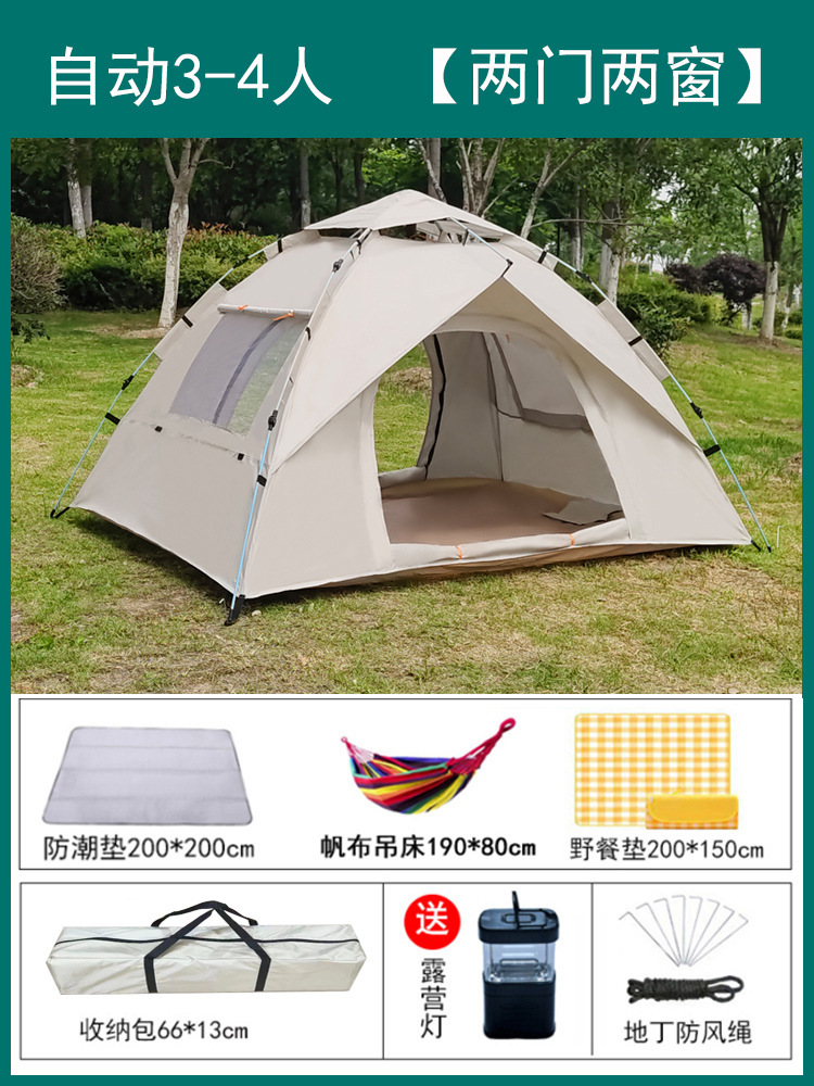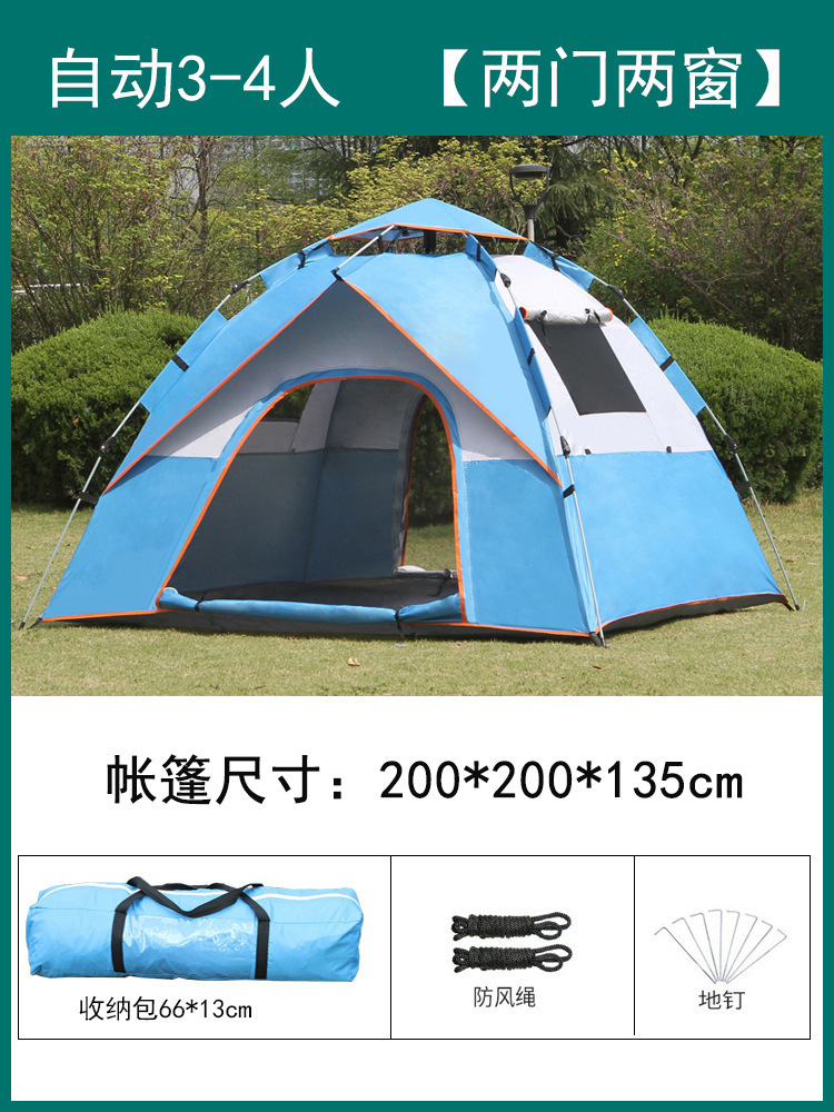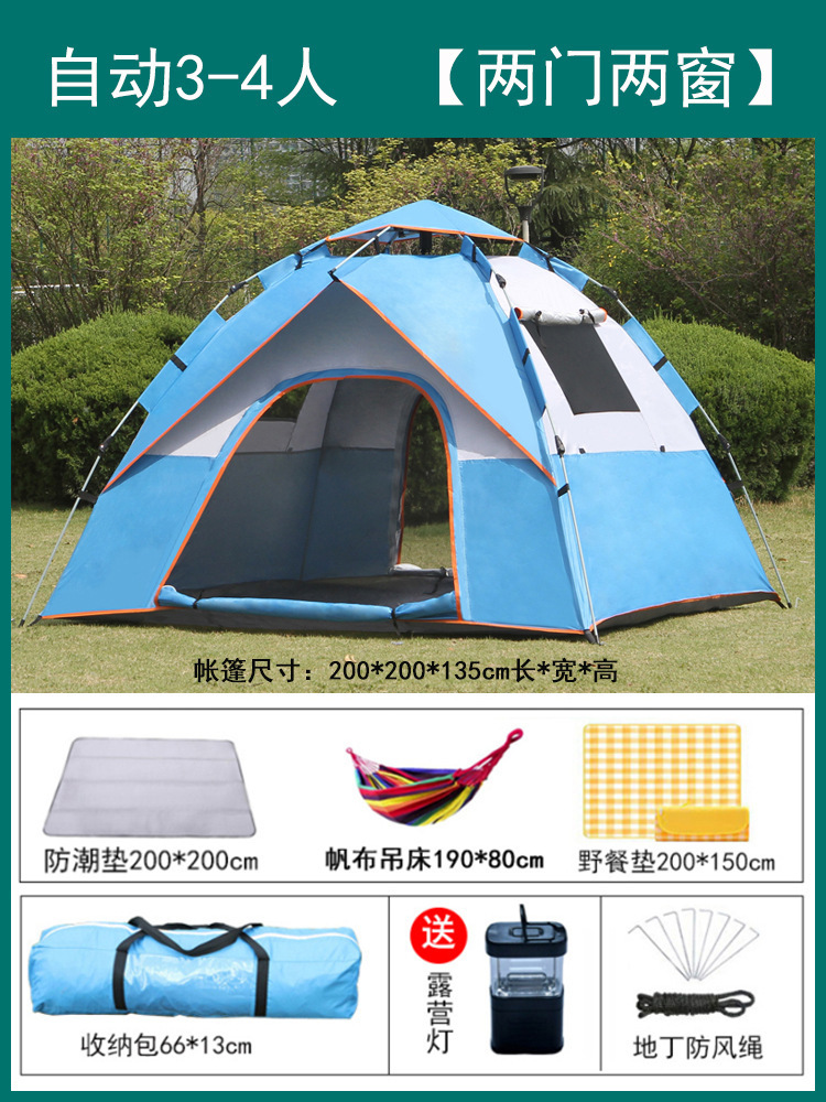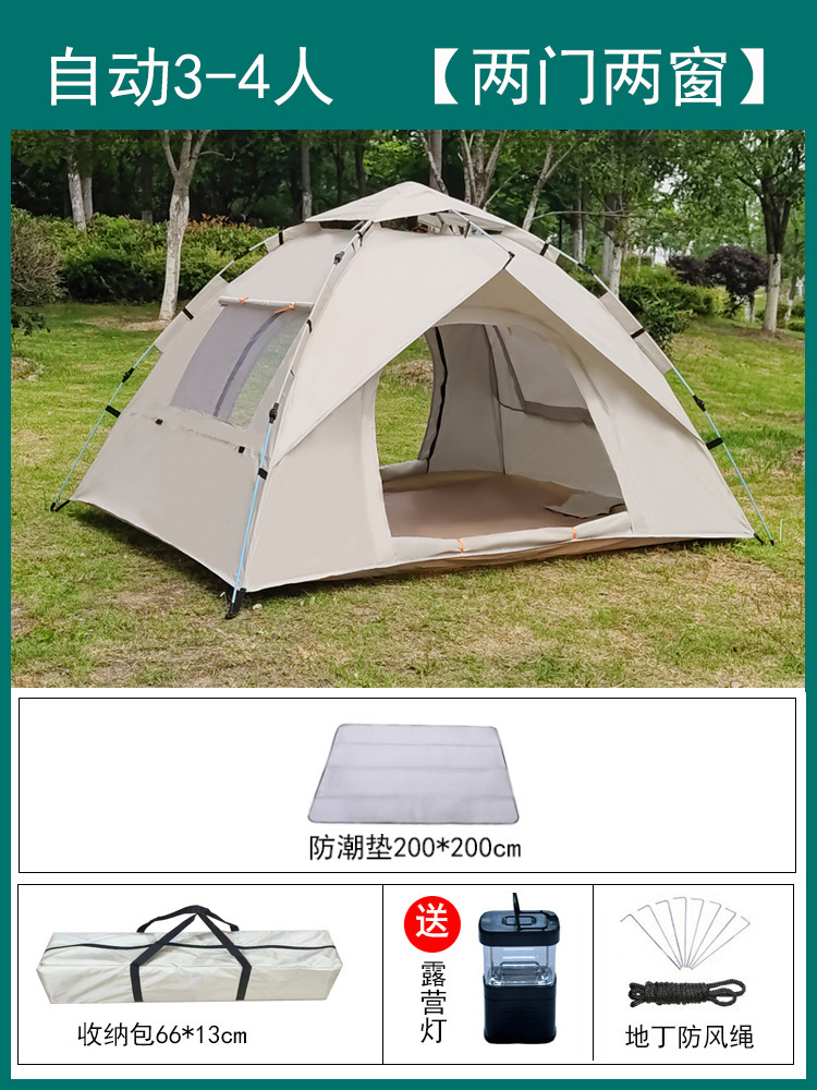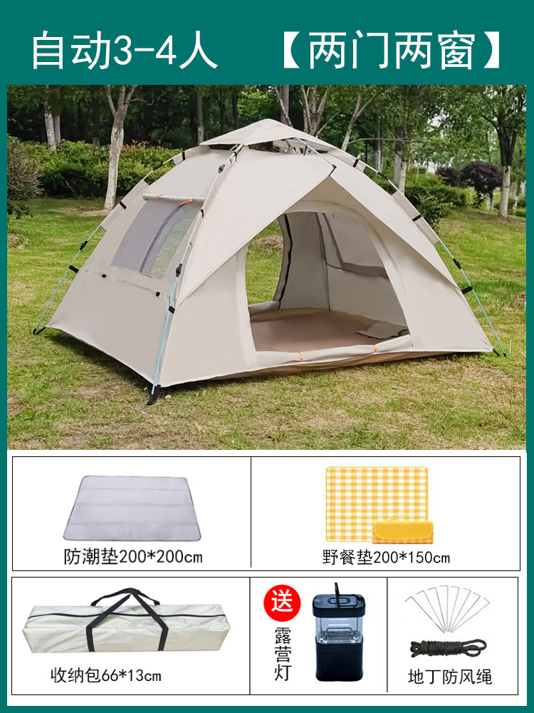 3~4인용 야외 캠핑용 두꺼운 방수 텐트, 2인용 완전 자동 야외 자외선 차단 캠핑 및 피크닉 장비스토어 가기