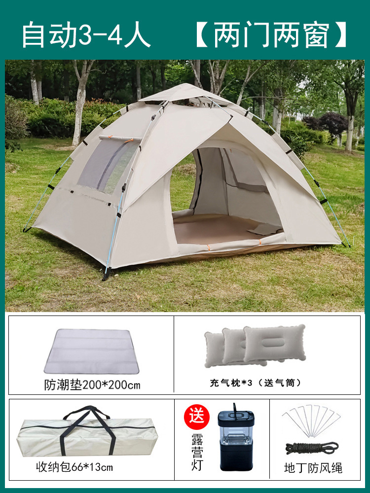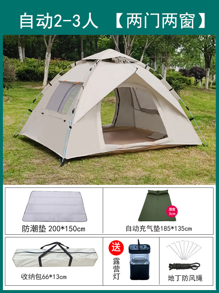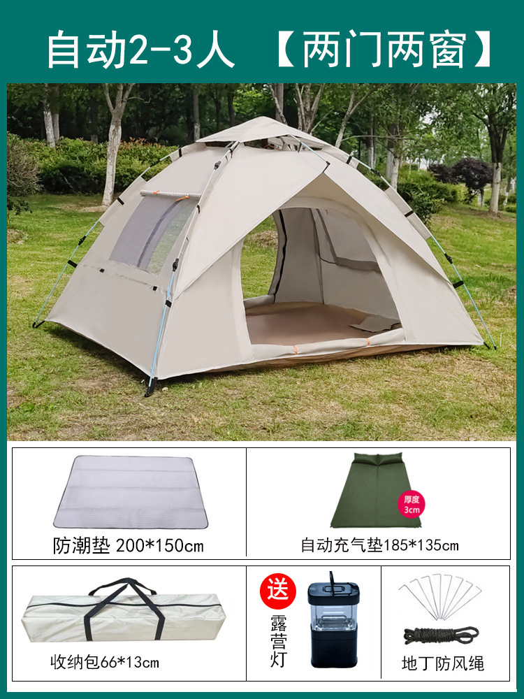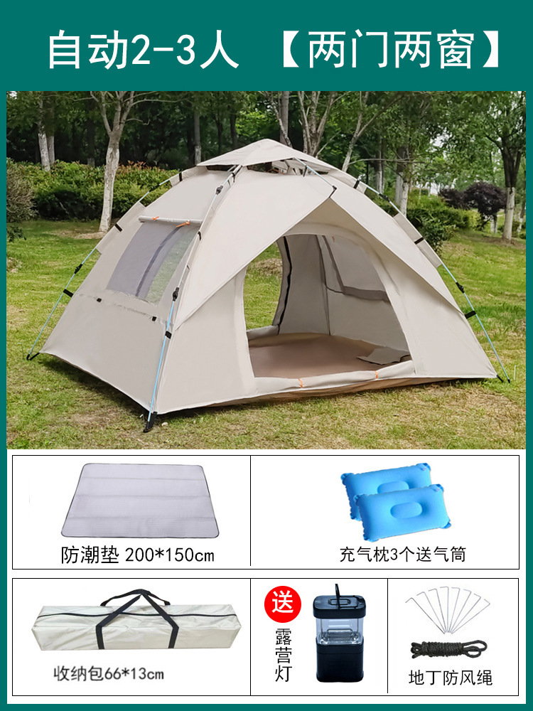 • 2~3인용 오토매틱 베이지 + 방습패드 + 공기주입식 베개 2개 [문 2개, 창문 2개]