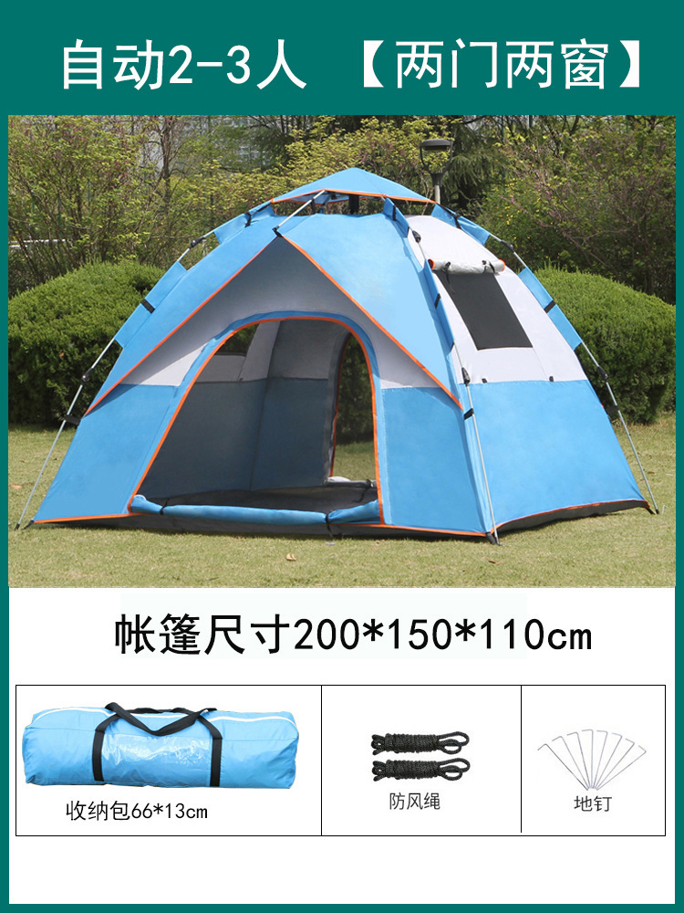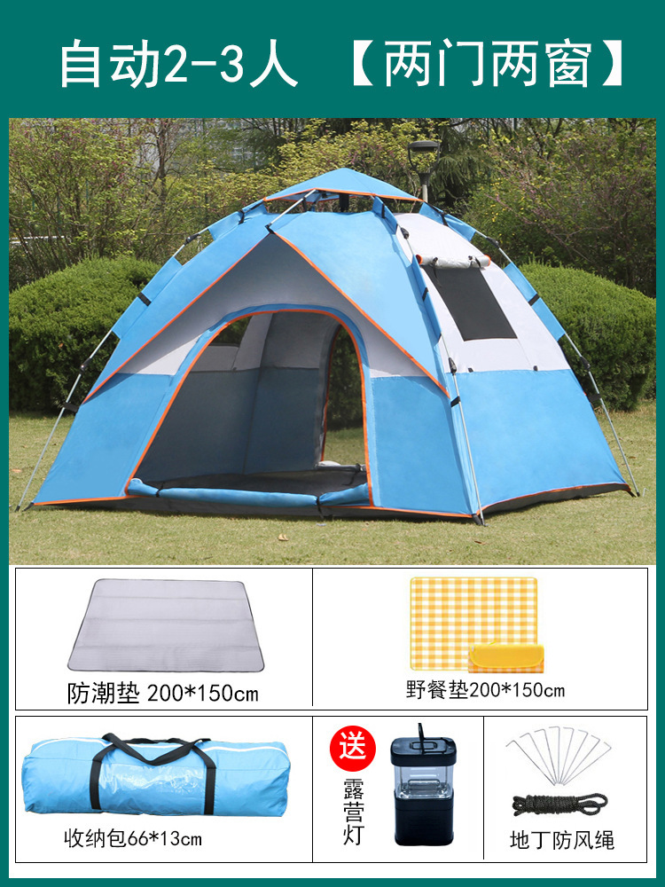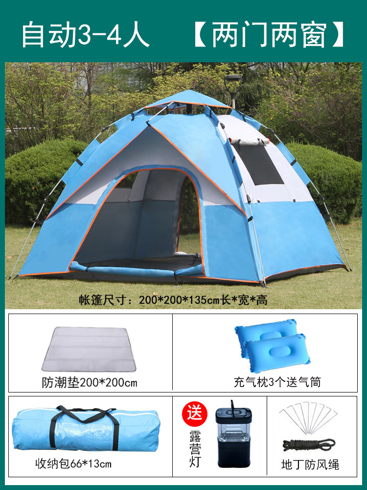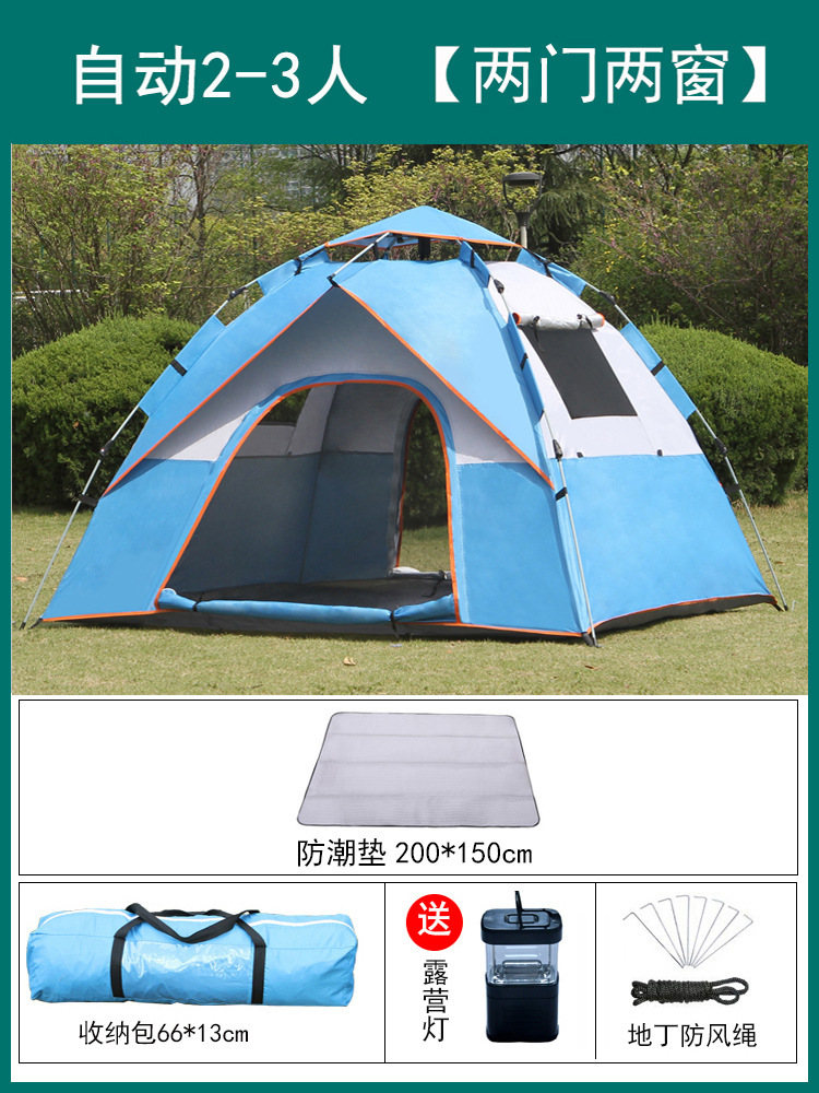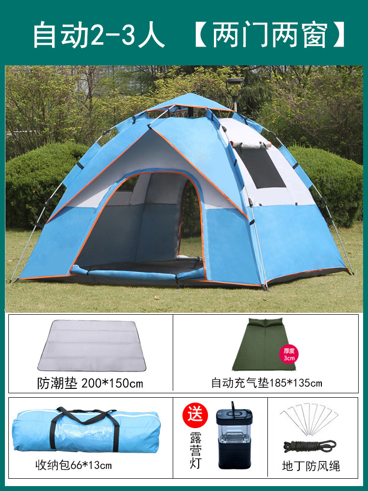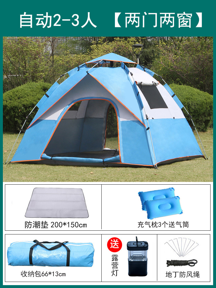 • 자동 2-3인 블루 + 방습 패드 + 공기주입식 베개*2 [문 2개, 창문 2개]