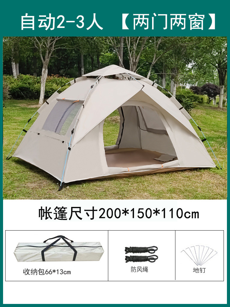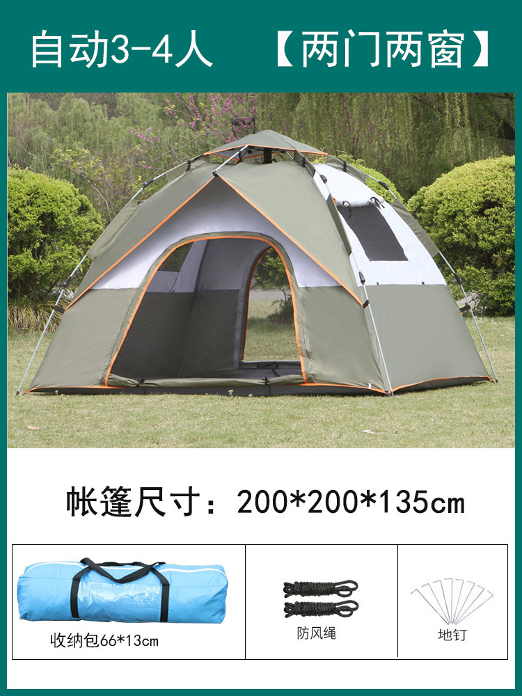 3~4인용 야외 캠핑용 두꺼운 방수 텐트, 2인용 완전 자동 야외 자외선 차단 캠핑 및 피크닉 장비