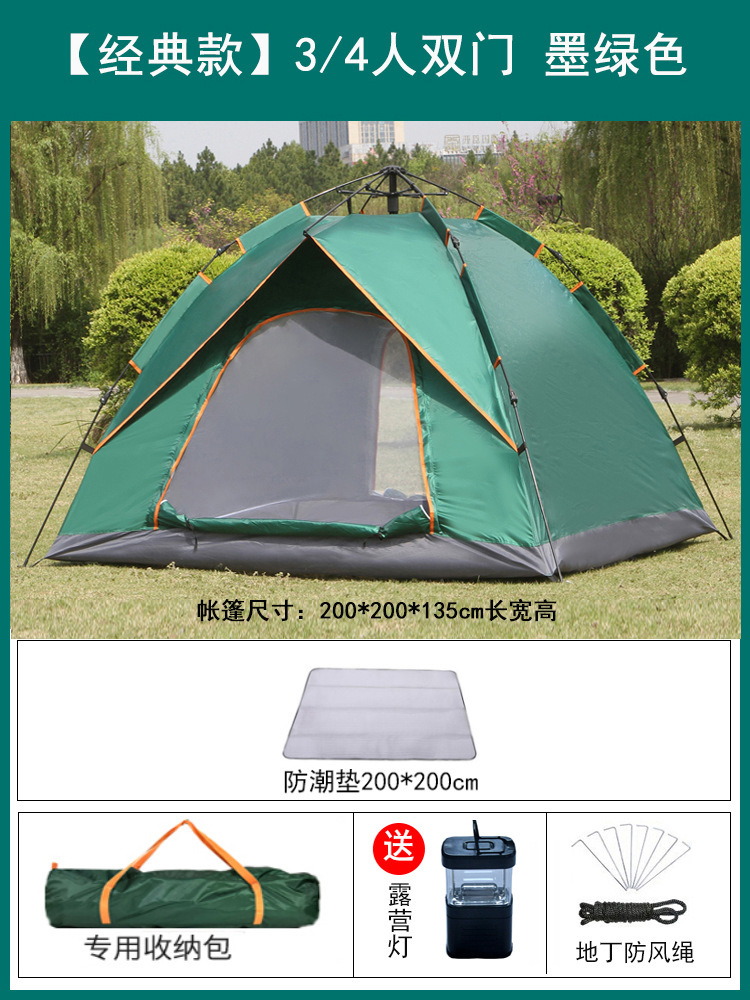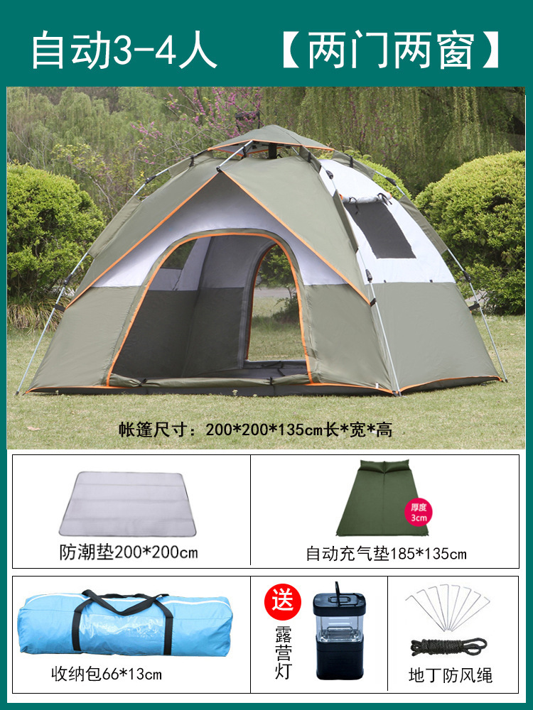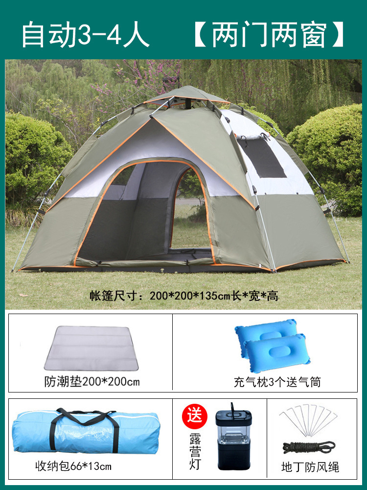 • 3~4인용 자동 밀리터리 그린 + 방습 패드 + 공기주입식 베개*3 [문 2개, 창문 2개]
