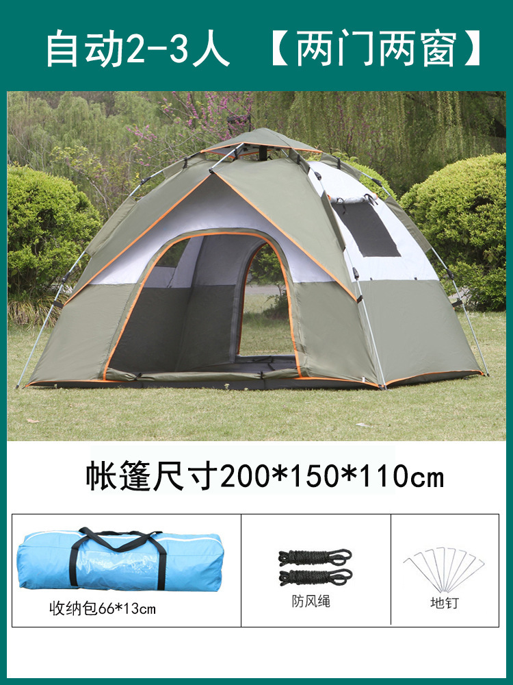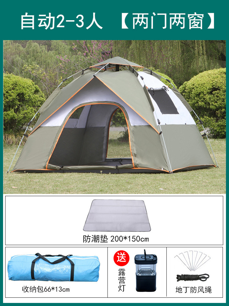 • 자동 2-3인 밀리터리 그린 + 방습 패드 + 공기주입식 베개*2 [문 2개, 창문 2개]