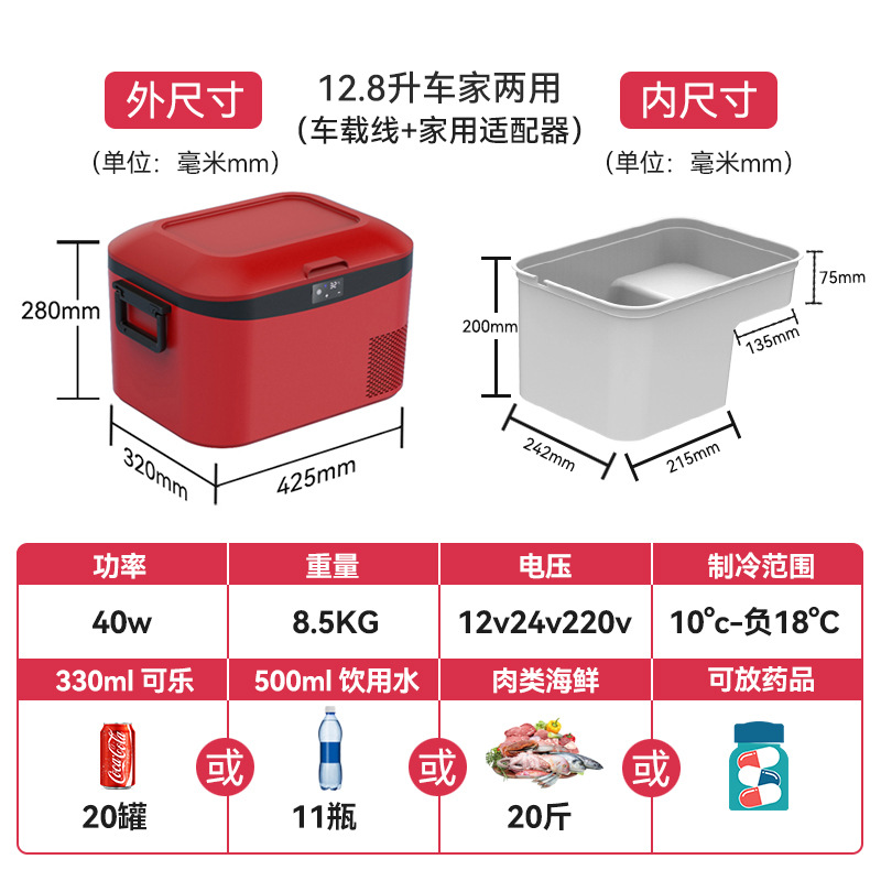• 12.8L 빨간색 자동차 가정용 이중 목적 + Huayi 인버터 압축기 + 3년 보증