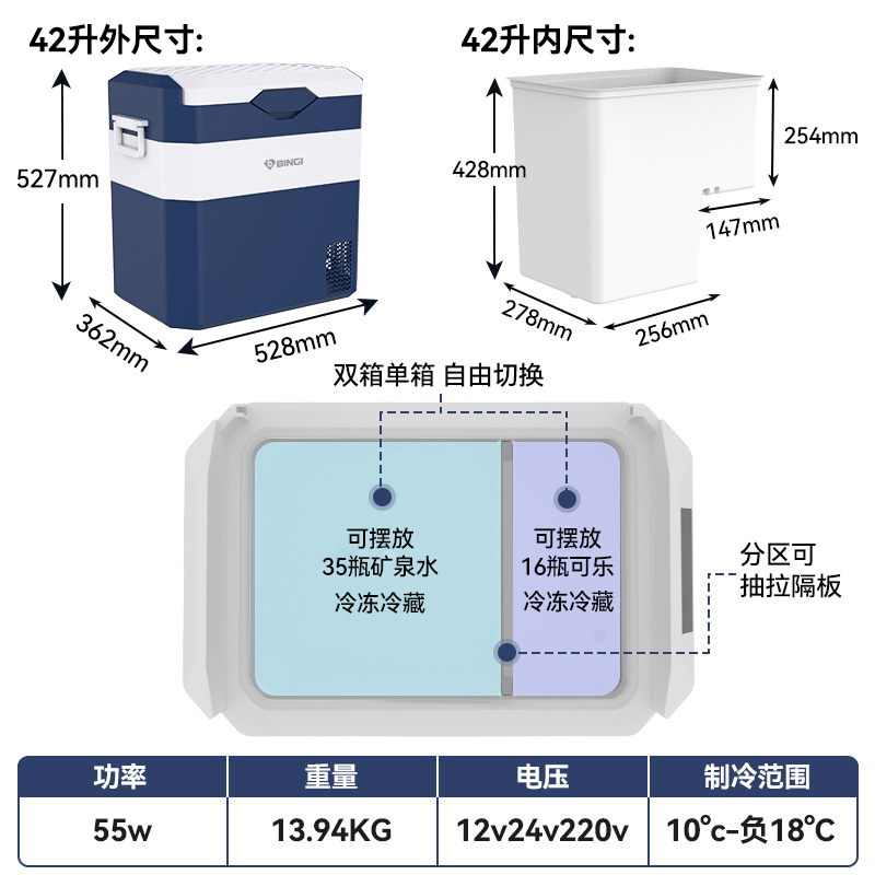 • 42리터 블루 이중 온도 단일 제어 + Huayi 인버터 압축기 + 3년 보증