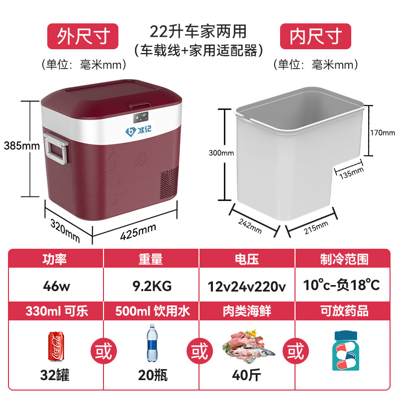 • 22리터(빨간색) 자동차 및 가정용 이중 목적 + Huayi 인버터 압축기 + 3년 보증