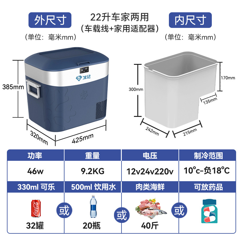 • 22리터(파란색) 자동차 및 가정용 이중 목적 + Huayi 인버터 압축기 + 3년 보증