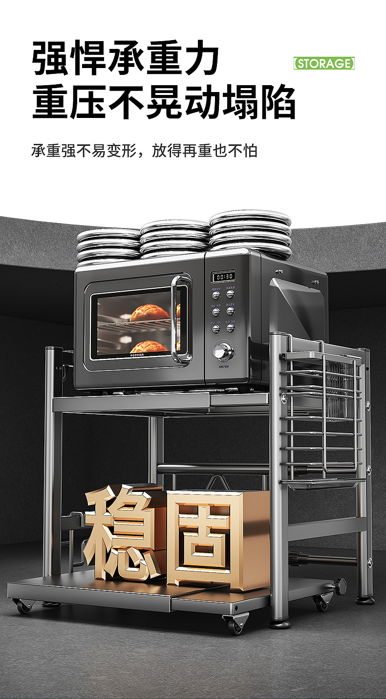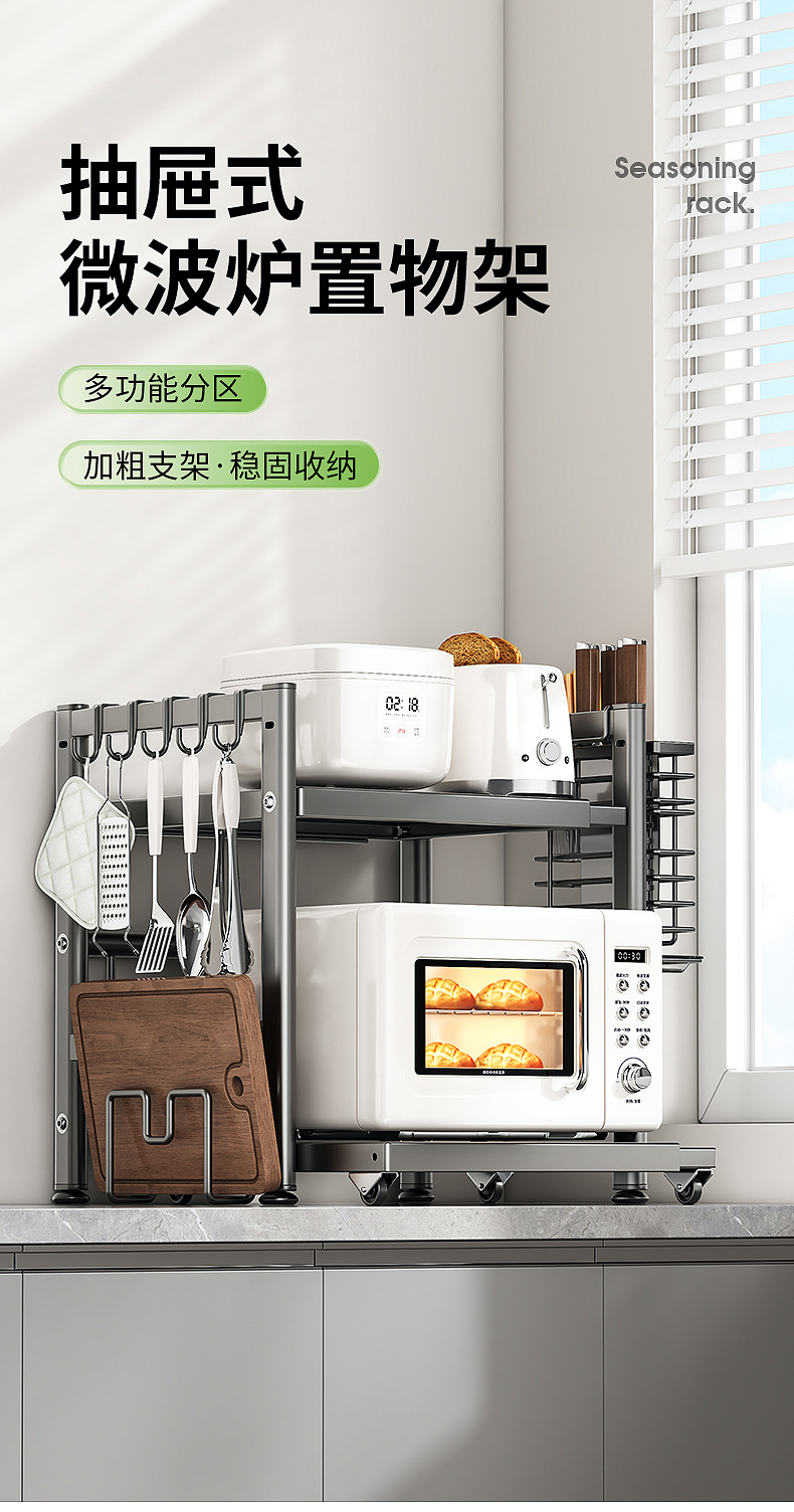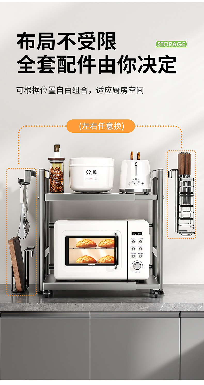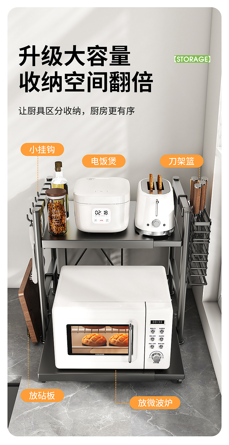 주방 전자레인지 수납 선반, 다용도 테이블탑 이중층 밥솥 오븐 가전제품 조미료 수납 선반