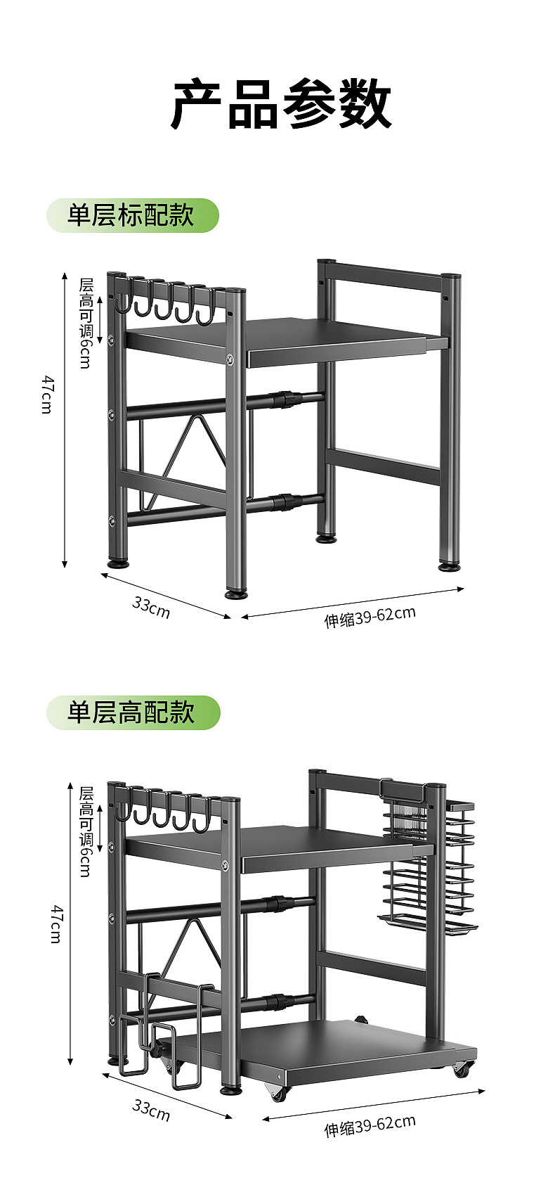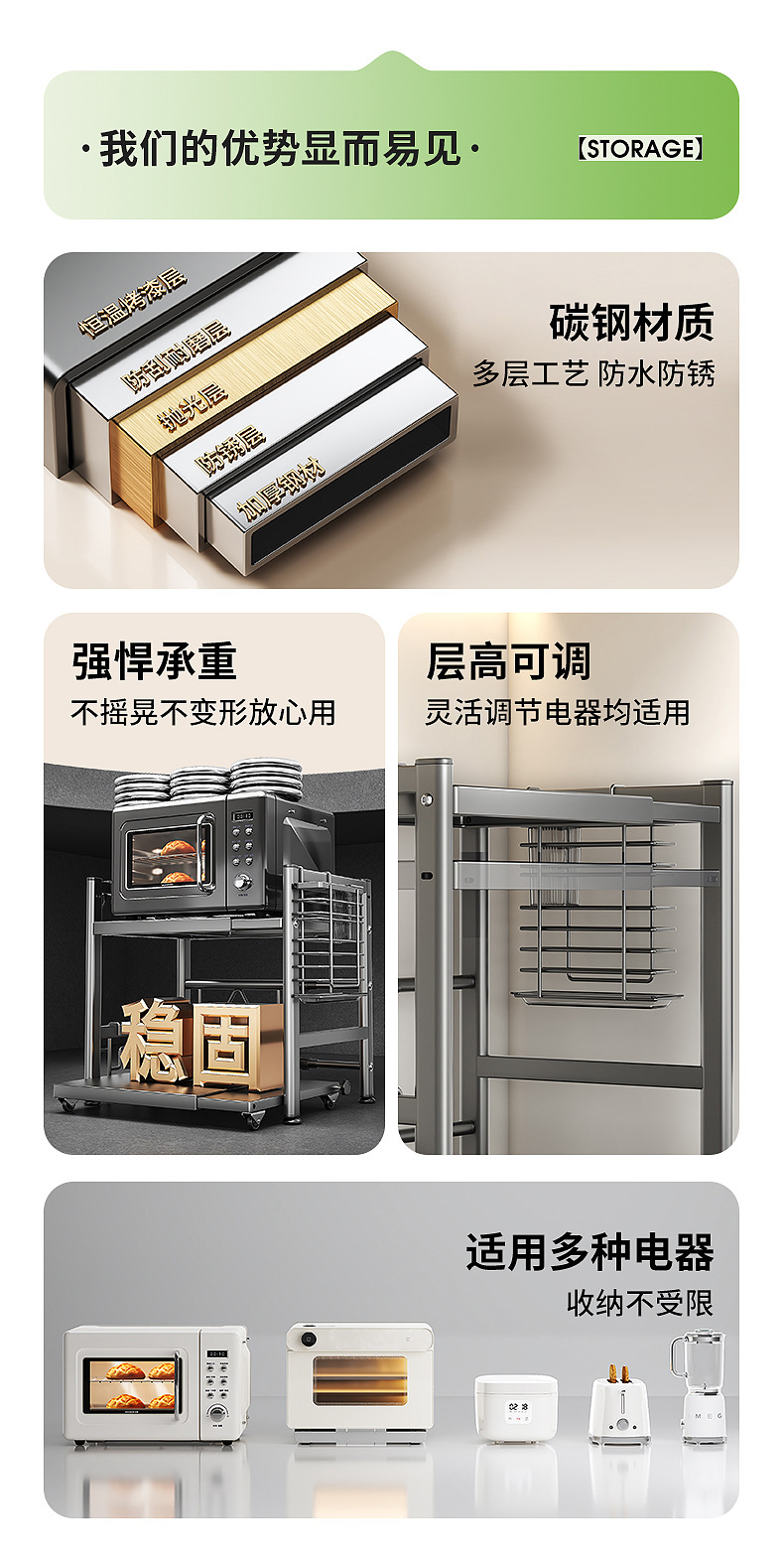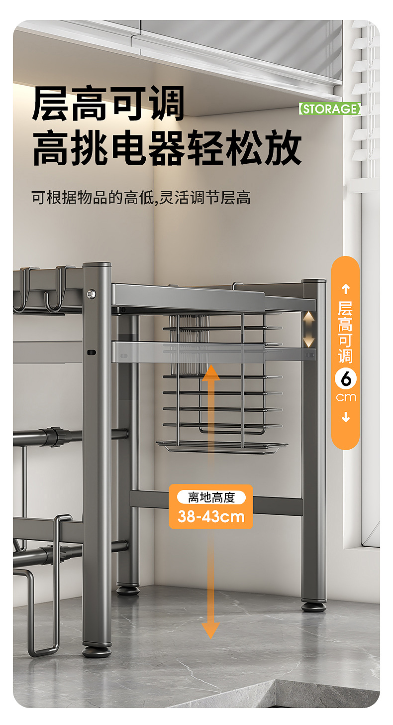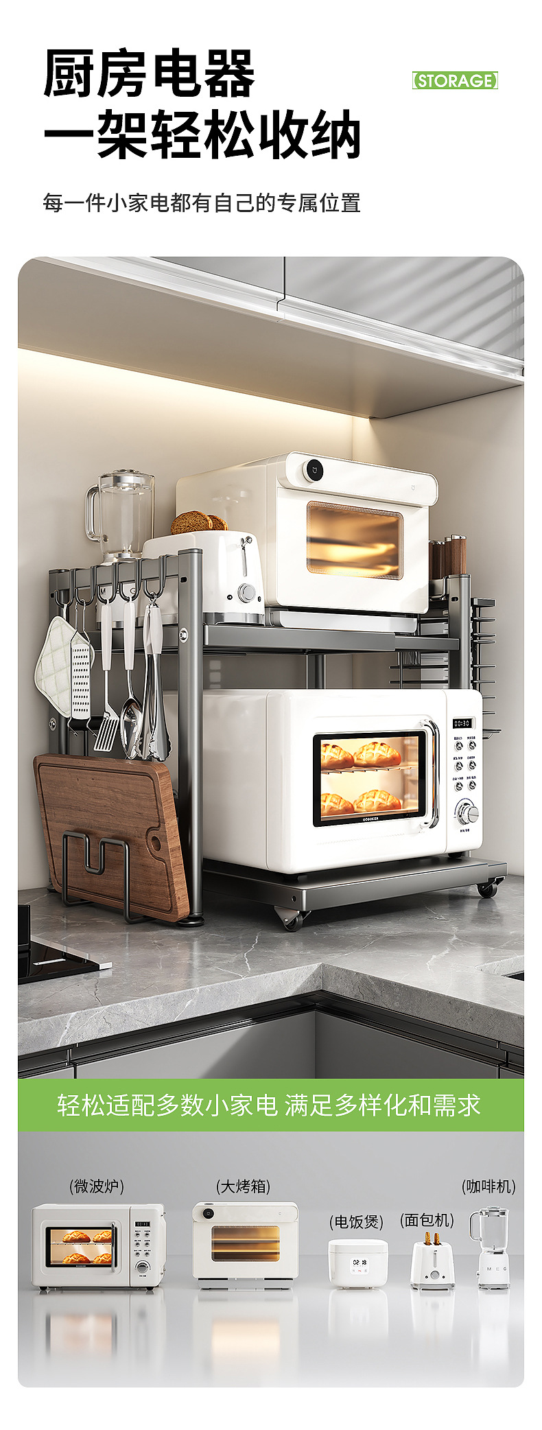 주방 전자레인지 수납 선반, 다용도 테이블탑 이중층 밥솥 오븐 가전제품 조미료 수납 선반