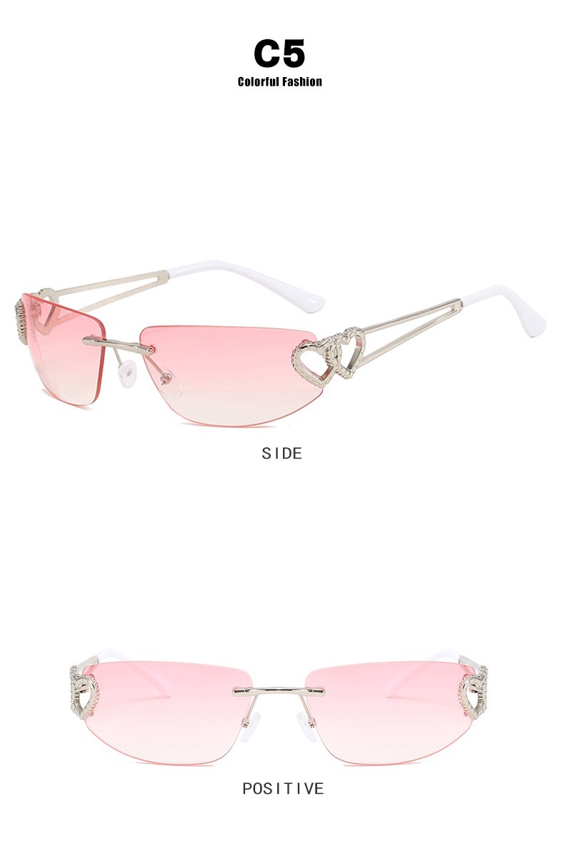 성격 프레임리스 사랑 수은 고양이 눈 선글라스 유럽과 미국의 뜨거운 소녀 Y2K 오목한 모양 스트리트 샷 그물 레드 선글라스 여성-