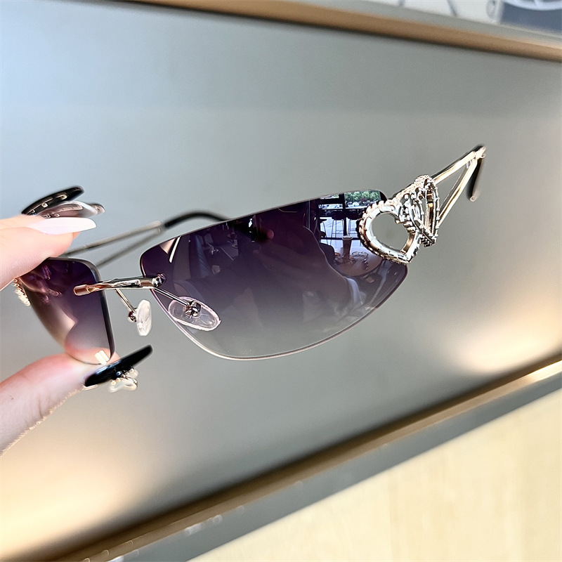 성격 프레임리스 사랑 수은 고양이 눈 선글라스 유럽과 미국의 뜨거운 소녀 Y2K 오목한 모양 스트리트 샷 그물 레드 선글라스 여성-스토어 가기