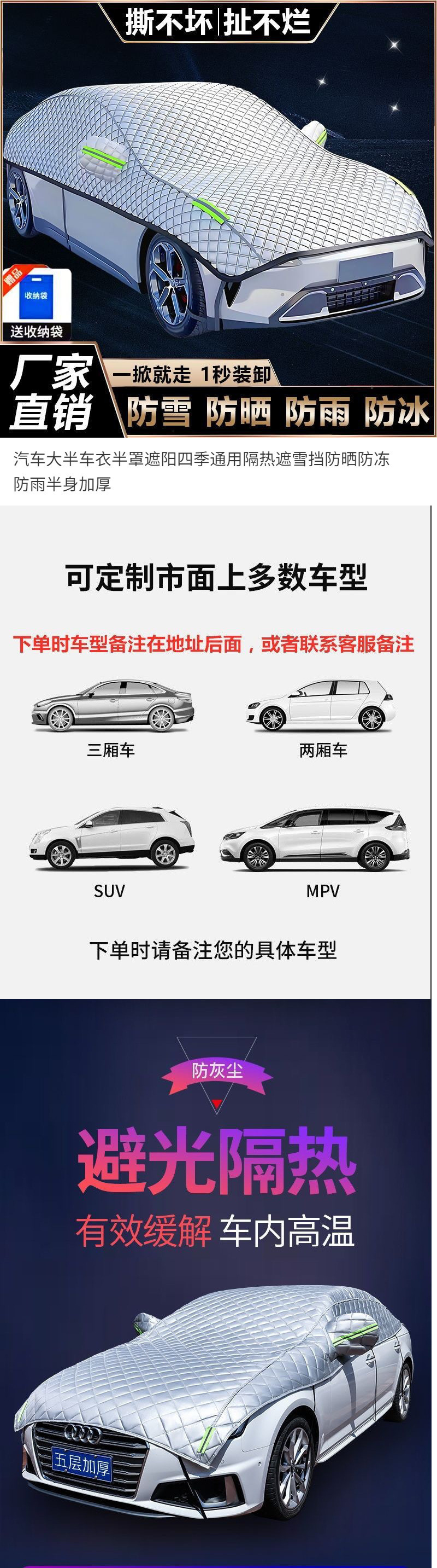 자동차 하프 커버, 하프 커버, 사계절용 차양, 단열, 눈 차단, 자외선 차단, 동결 방지, 비 방지, 하프 바디 두꺼워짐