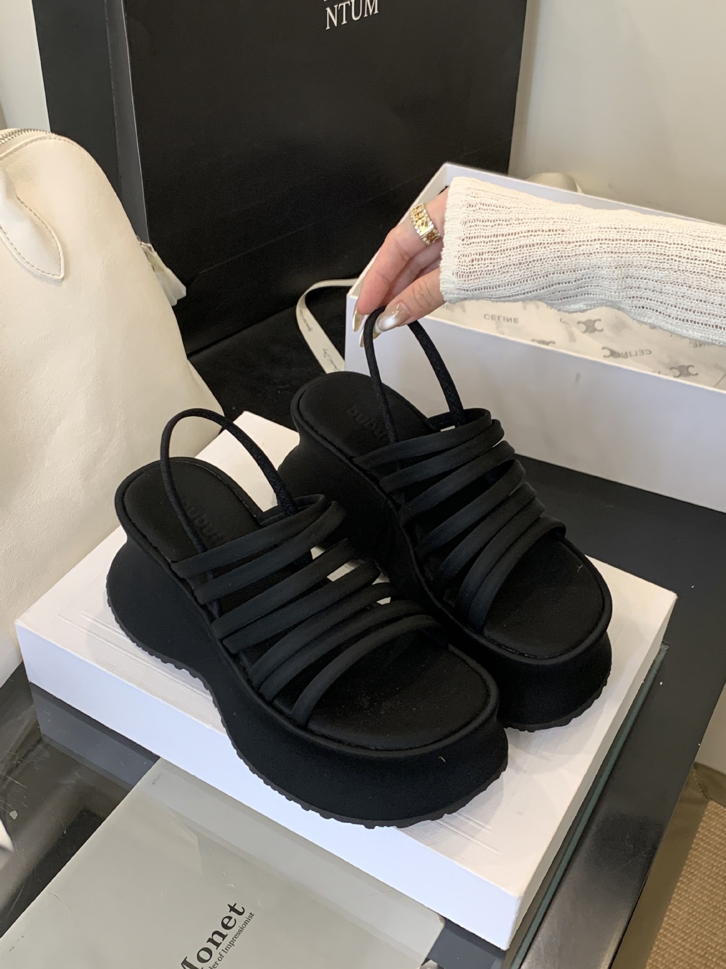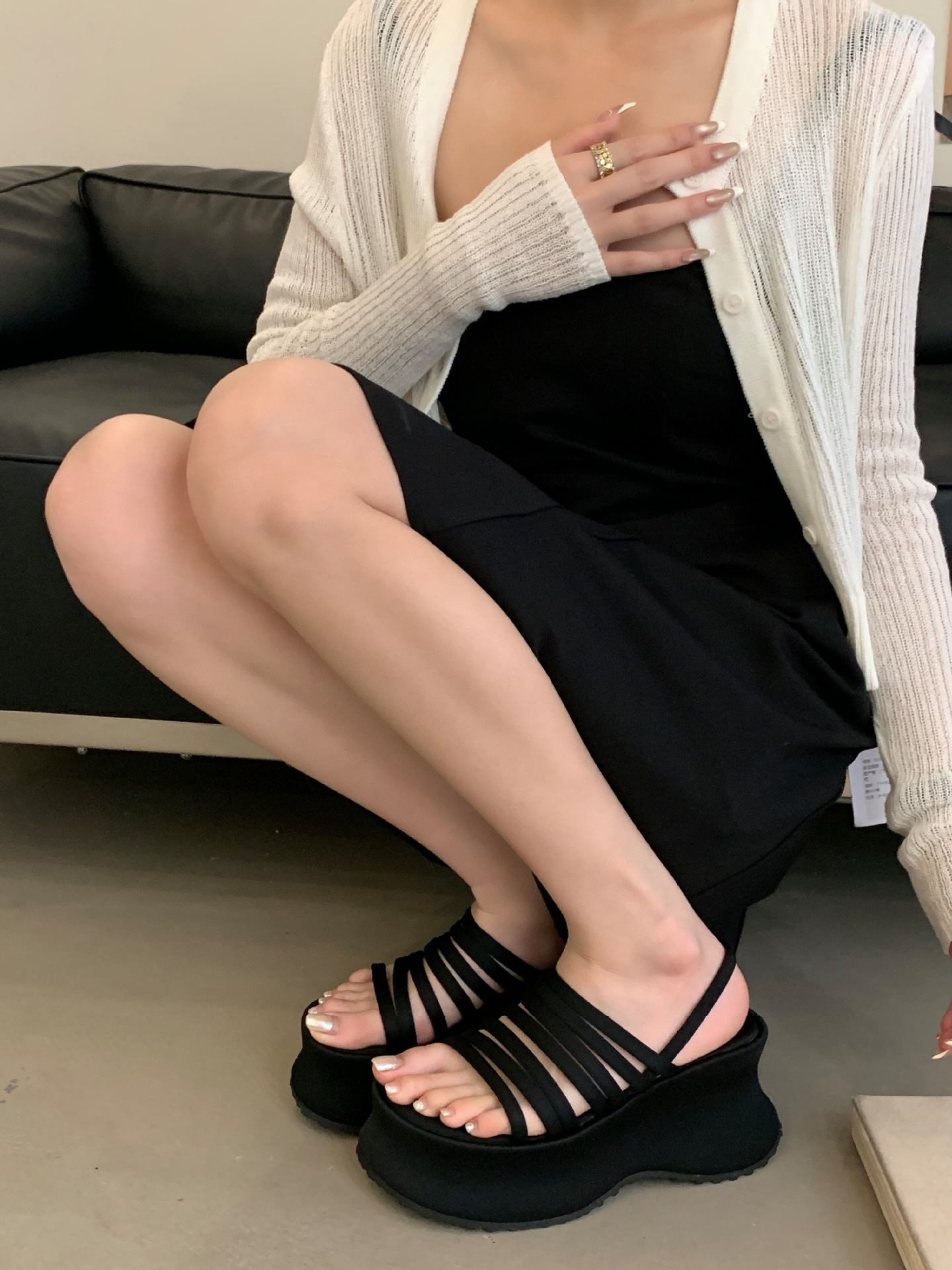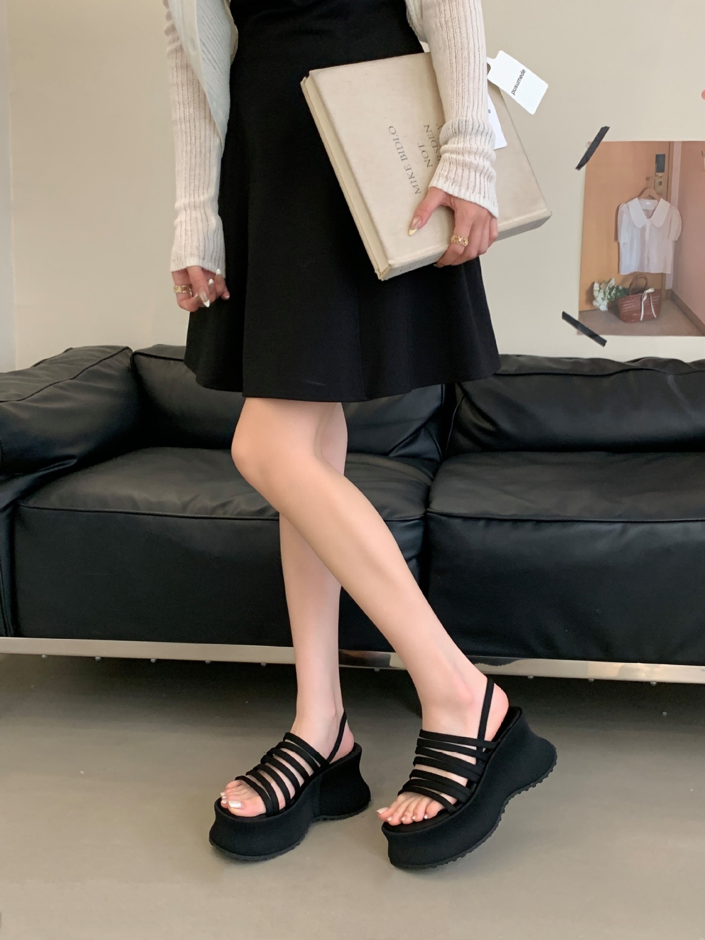 두꺼운 밑창으로 높이가 8cm 증가하고 가벼운 디자인의 여성용 얇은 스트랩 조합 샌들 2025년 여름 새 스타일스토어 가기