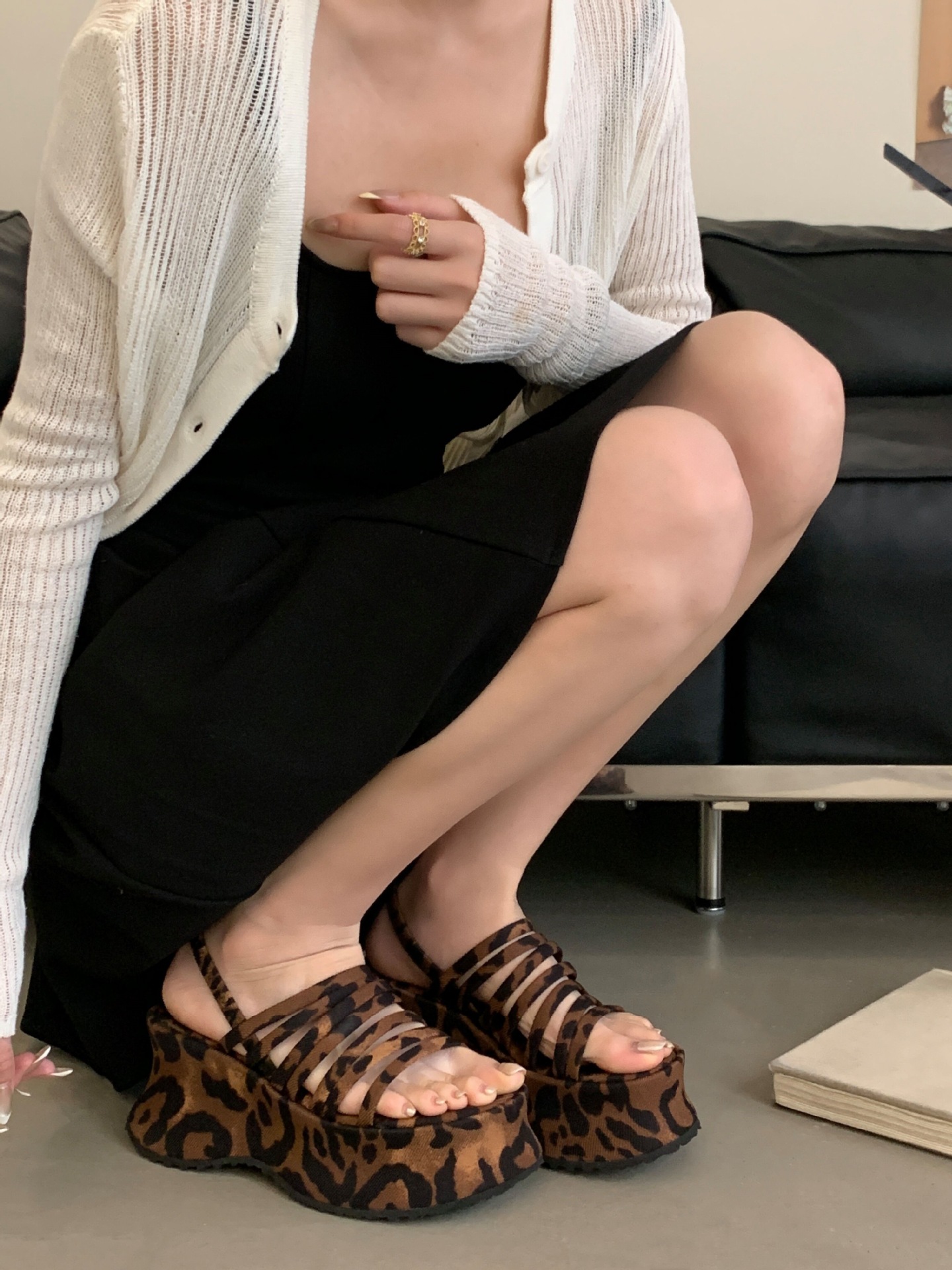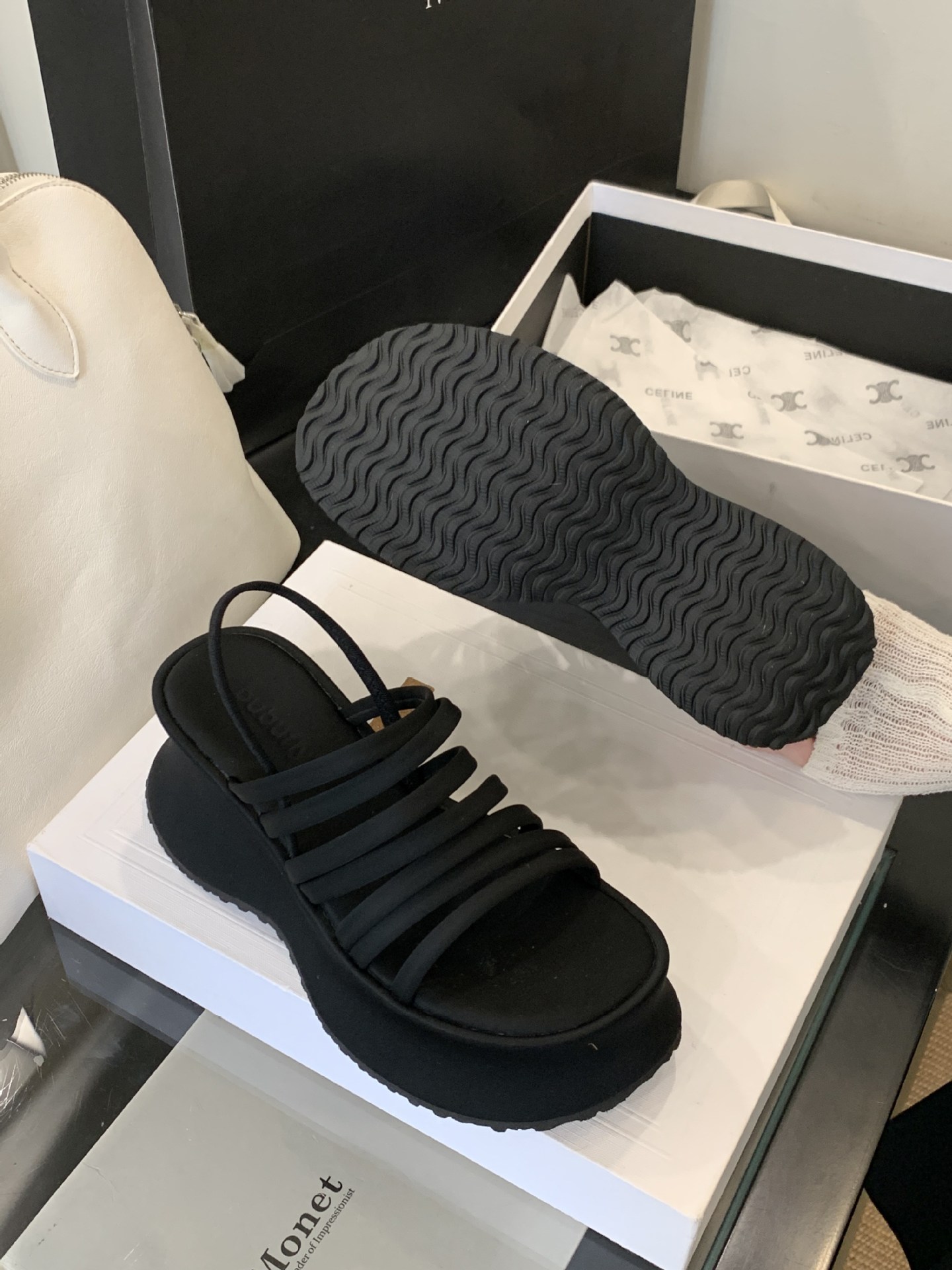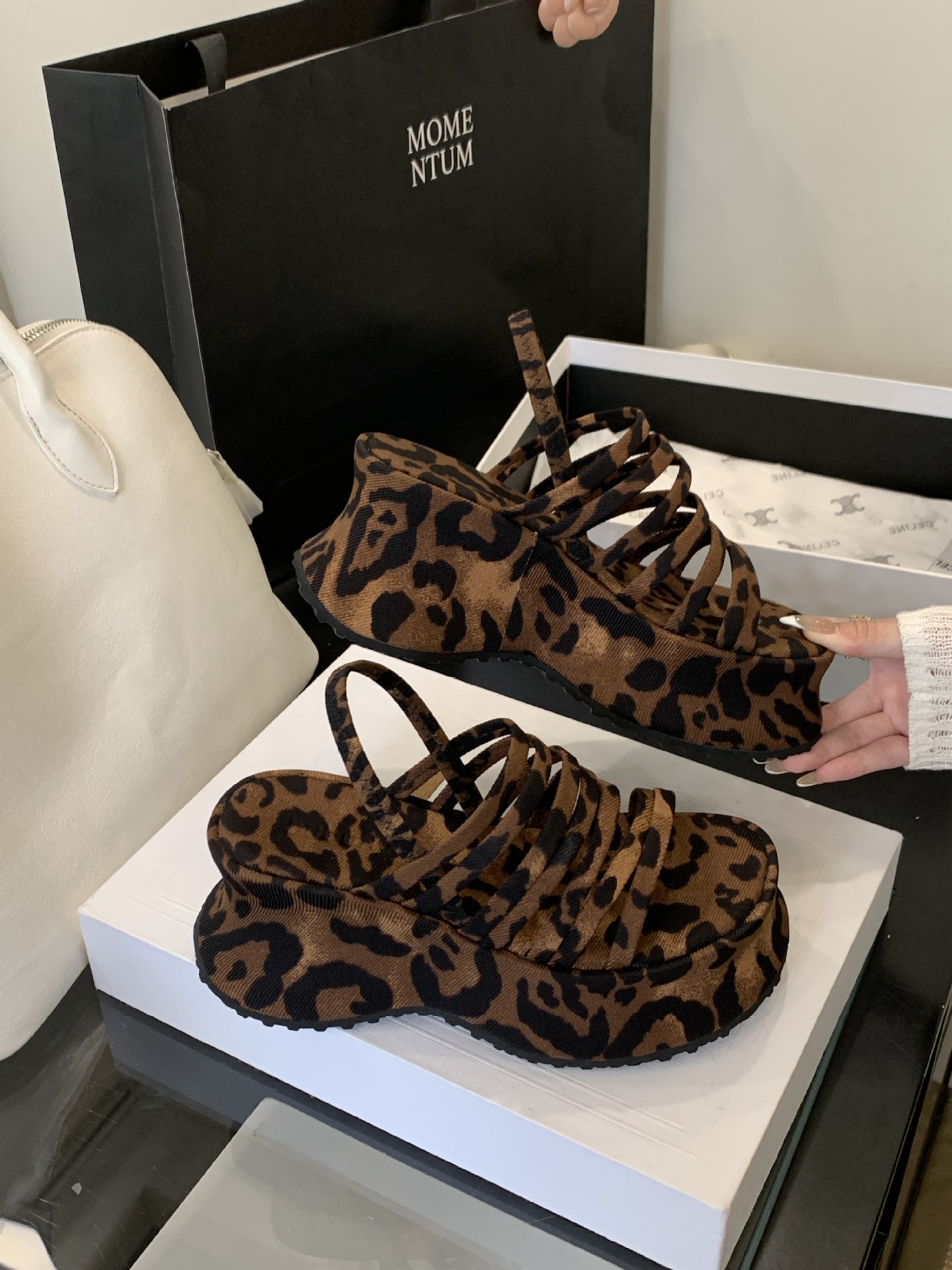 두꺼운 밑창으로 높이가 8cm 증가하고 가벼운 디자인의 여성용 얇은 스트랩 조합 샌들 2025년 여름 새 스타일스토어 가기