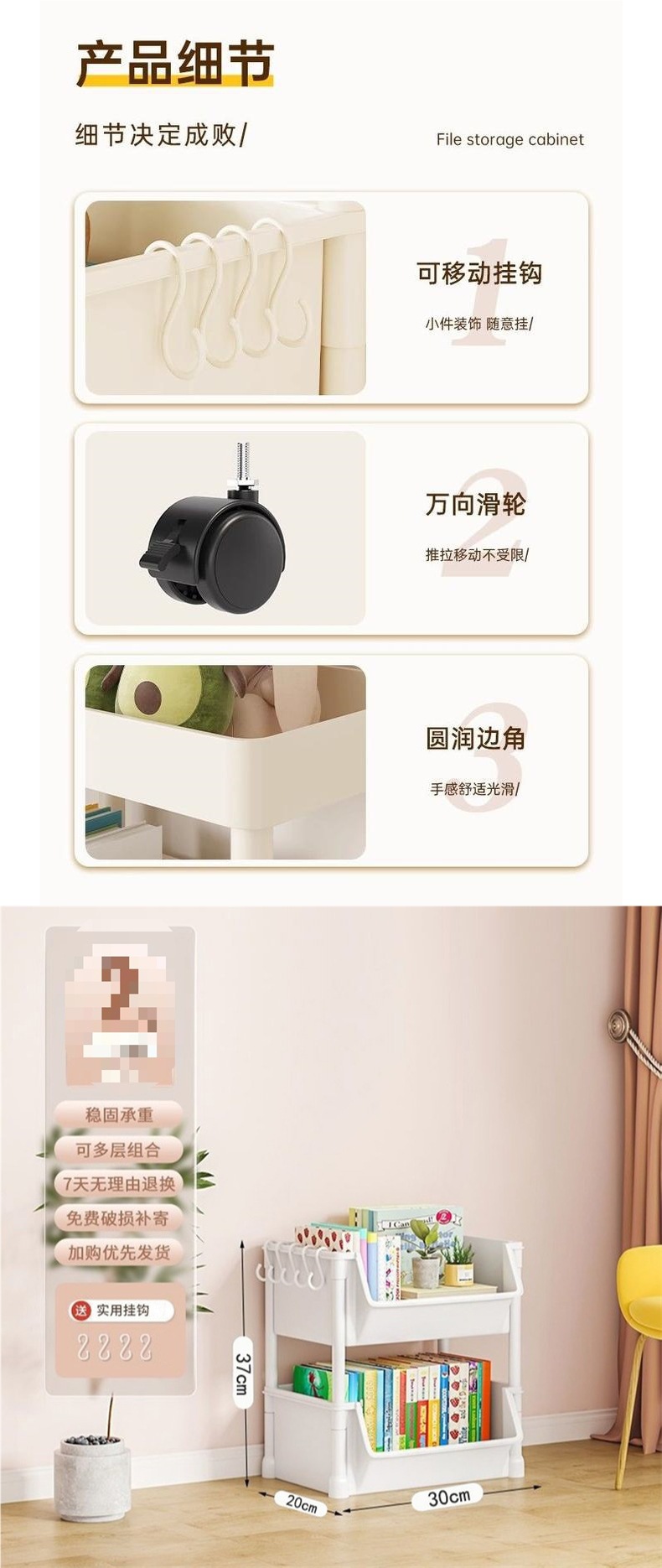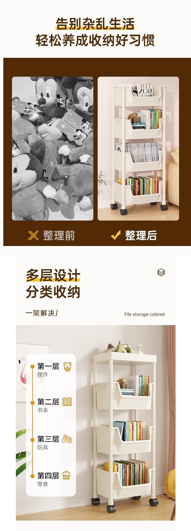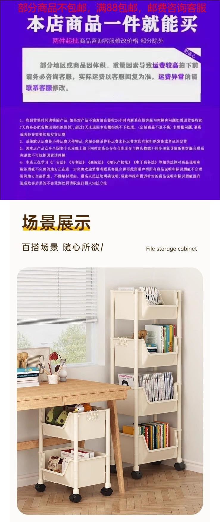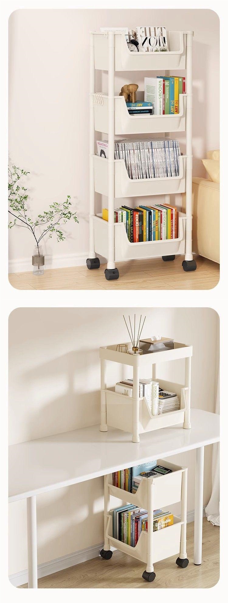 모바일 책장 보관 선반 바닥 다층 바퀴 거실 침실 기숙사 어린이 작은 책장 트롤리 보관 랙
