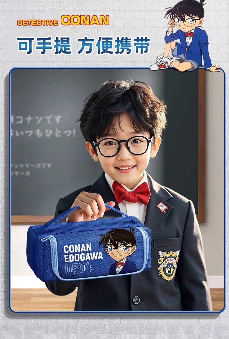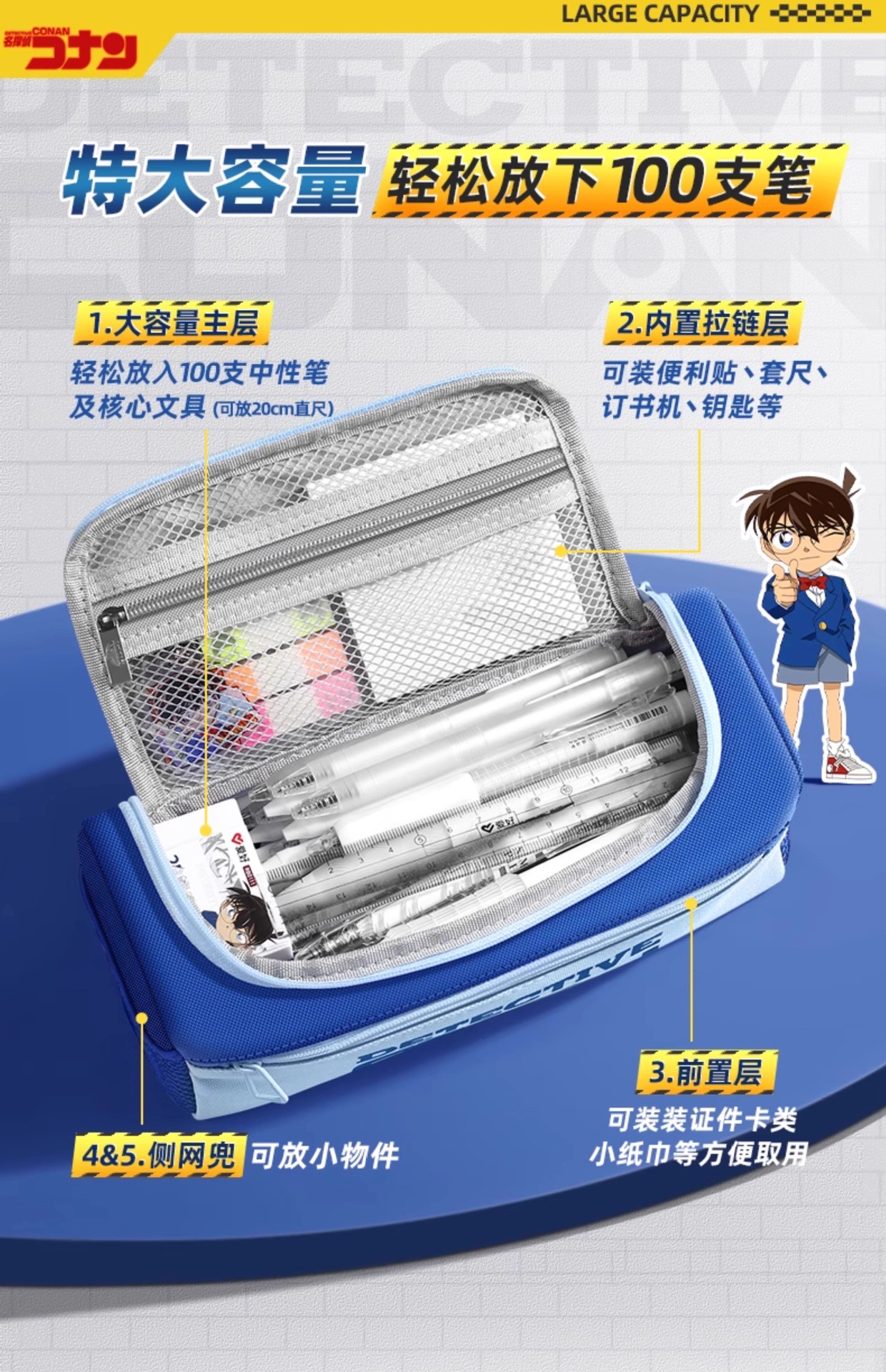코난 공동 브랜드 연필 가방 소년의 고급 문구 상자 틈새 스타일 초등학생 대용량 연필 문구 가방