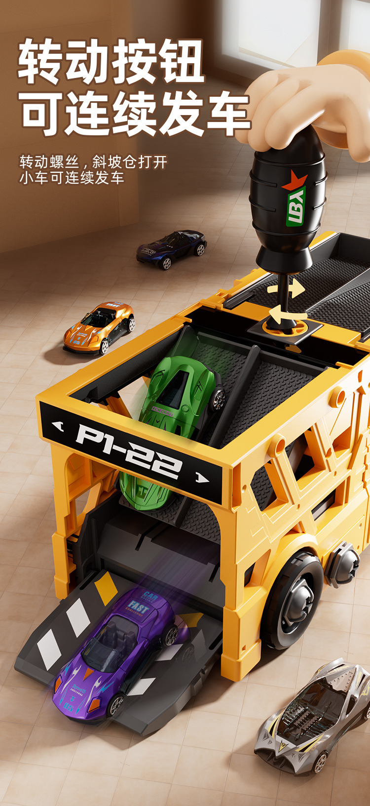 • 플랫베드 컨테이너 트럭 분해 및 조립 [대형 드라이버 + 합금 트럭 6대 포함] 컬러 박스 + 통신판매 상자 892g