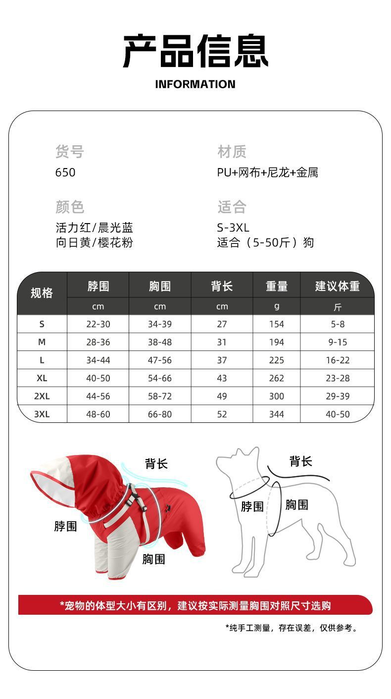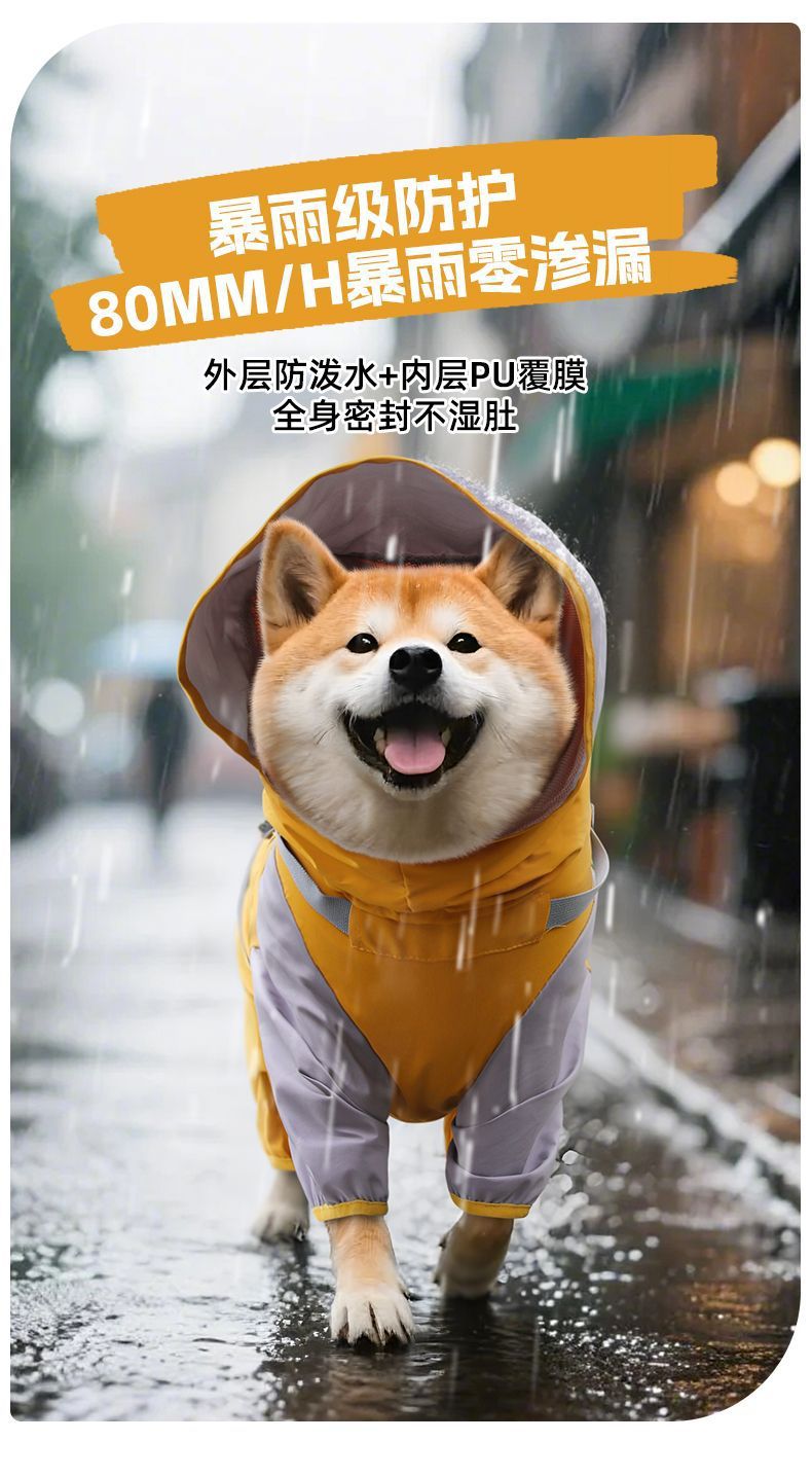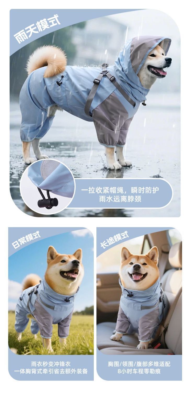 새로운 개 비옷 중형 및 소형견 시바견 방풍 및 방수 재킷 비오는 날 여행 옷 애완 동물 판초