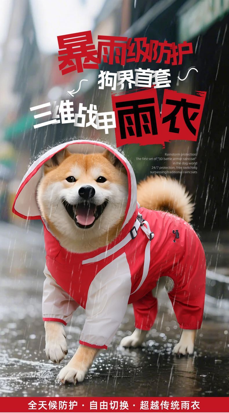 새로운 개 비옷 중형 및 소형견 시바견 방풍 및 방수 재킷 비오는 날 여행 옷 애완 동물 판초스토어 가기